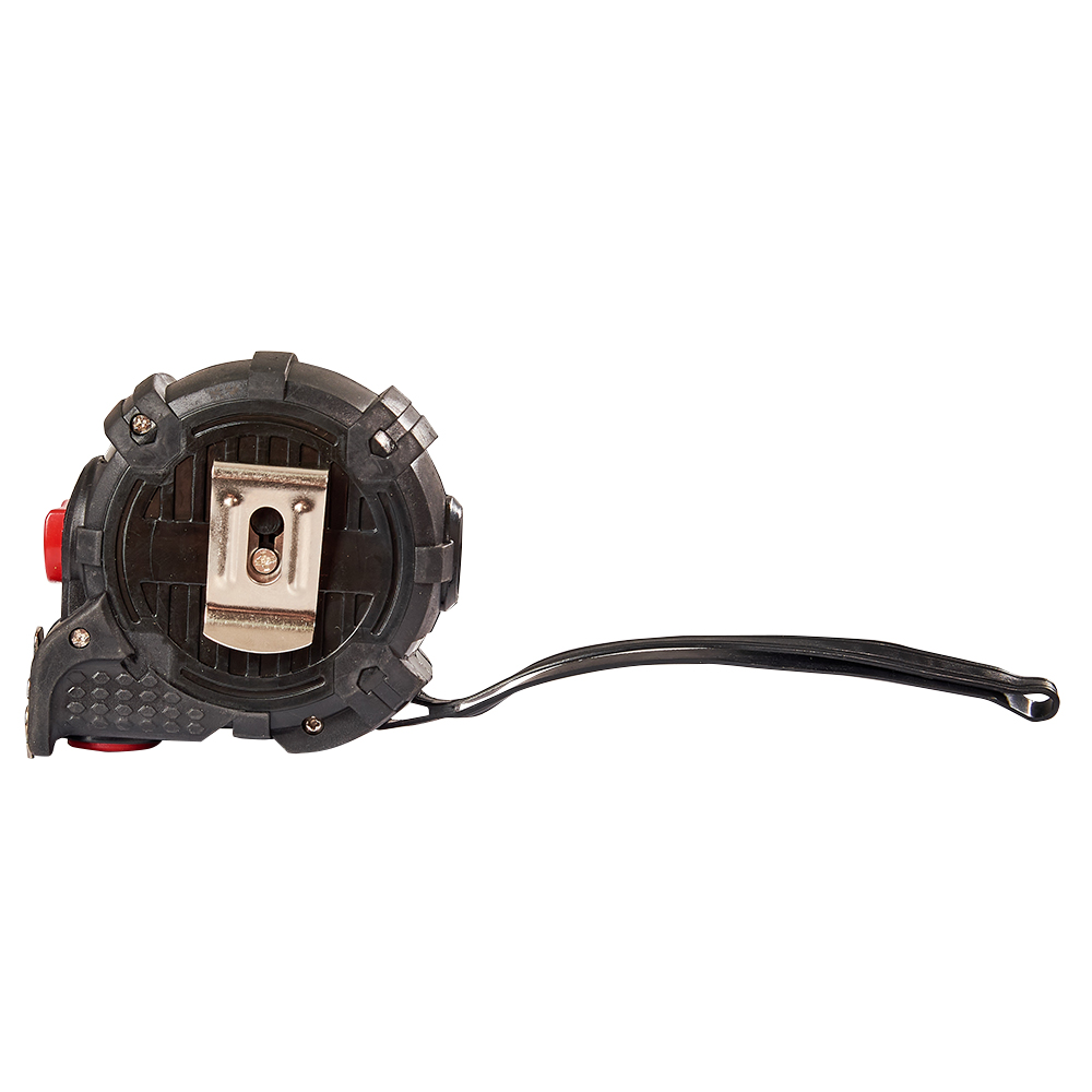 Металева кліпса дозволяє зручно носити інструмент на ремені під час роботи, а за допомогою тканинного ремінця можна носити рулетку також на зап'ястя.