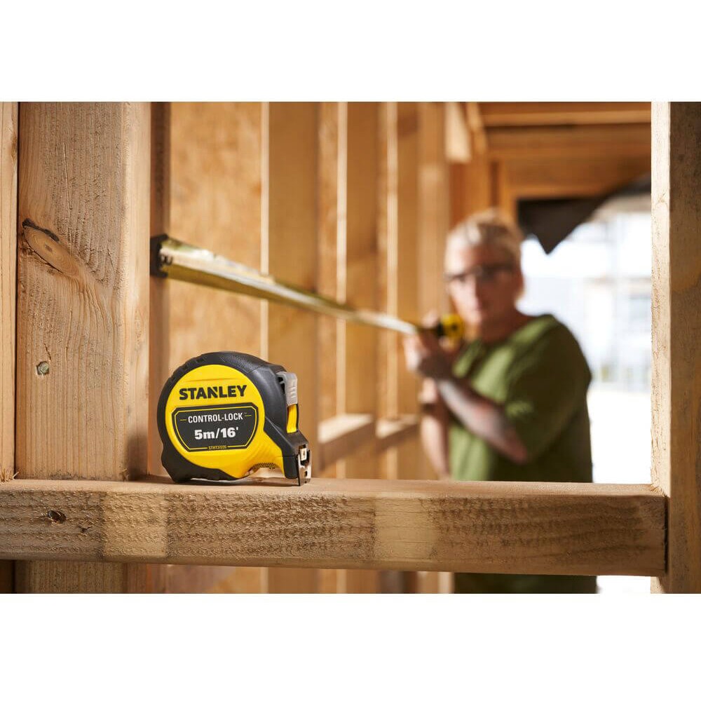 Рулетка вимірювальна CONTROL-LOCK довжиною 5 м/16, шириною 25 мм, в обгумованому корпусі, з подвійною шкалою STANLEY STHT37235-5
