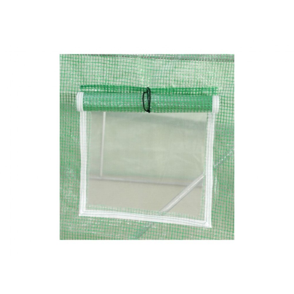 Для зручності догляду за рослинами теплиця оснащена вікнами з москітними сітками, які сприяють вентиляції та захищають від комах. Двері оснащені міцним замком для додаткового комфорту та безпеки.