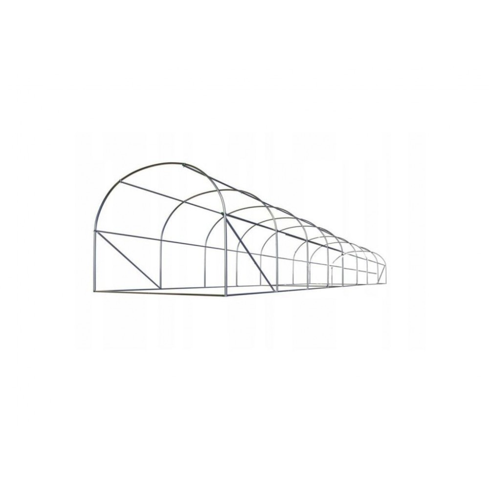 Обшивка теплиці виконана з плівки щільністю 140 г/м², яка має захист від ультрафіолету та вбудовану поліпропіленову сітку для підвищення міцності. Каркас виготовлений із оцинкованих труб і профілів, що забезпечує максимальну стійкість до корозії, сильного вітру та дощу.
