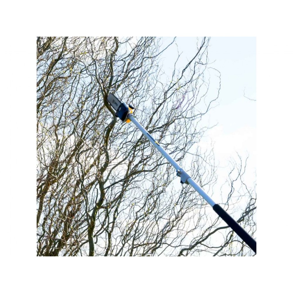 Насадки можна швидко закріпити на штанзі і так само легко зняти, що економить час і підвищує комфортність експлуатації. У стандартну комплектацію входить подовжувач штанги для обрізання гілок на висоті. Регульована по довжині ручка та ремінь через плече зменшують фізичне навантаження на оператора, завдяки чому ця садова комбісистема дуже зручна в роботі.