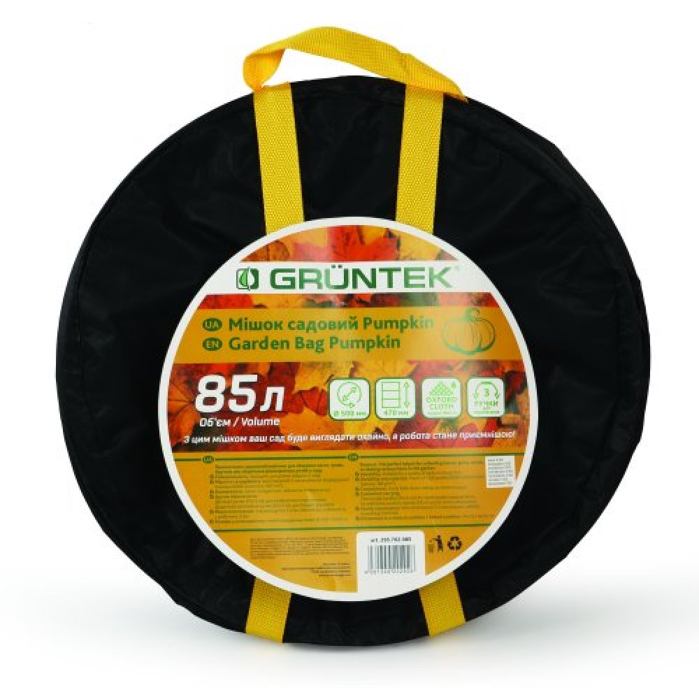 Садовий складний мішок GRUNTEK Pumpkin 85л призначений для збирання листя, гілок та іншого сміття, зібраного на городі, в саду, на присадибній ділянці.