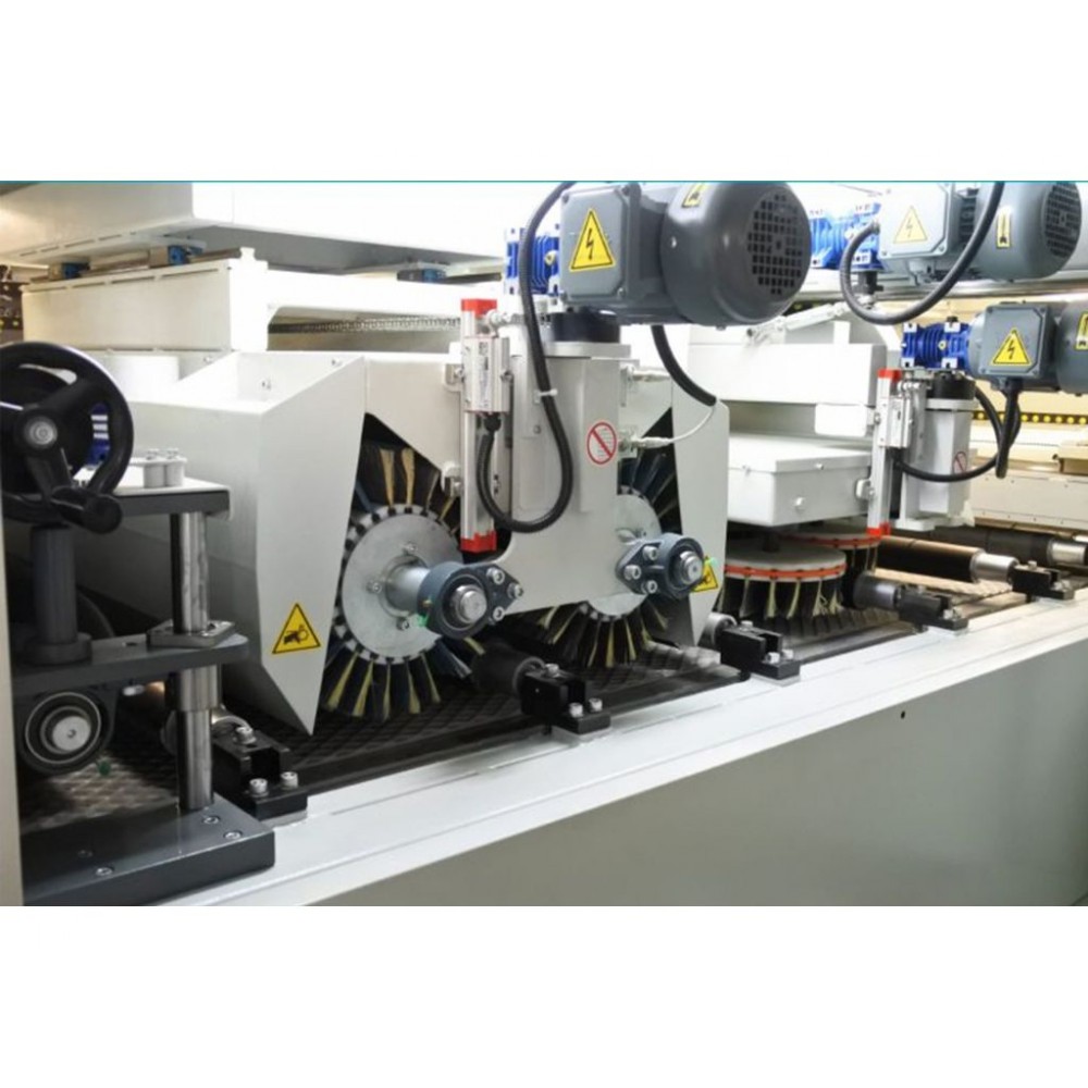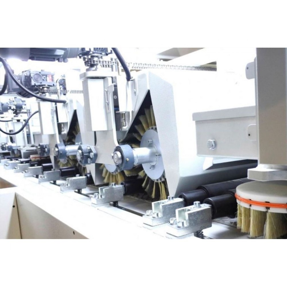 Цей агрегат складається з 9 рухомих щіткових шліфувальних машин з автоматичним регулюванням висоти, швидкості і напряму. Всього є 2 одиниці даної системи. Він надзвичайно успішний при шліфуванні на необроблених і грунтувальних виробах. Легко замінні щітки забезпечують зручність для оператора. Його здатність обертатися по обидва боки дозволяє використовувати різну зернистість на двох поверхнях автоматичного щіткового шліфувального верстата.