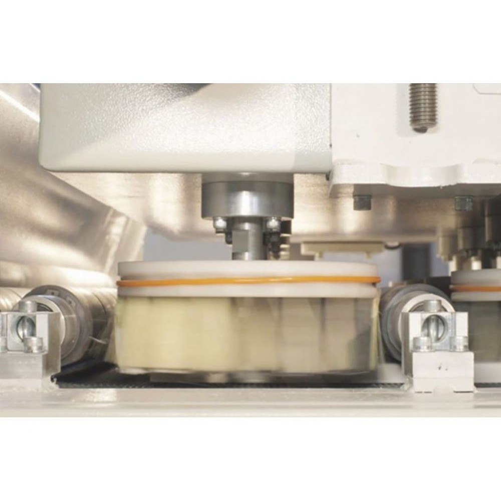 Конвеєрний стіл здійснює зворотно-поступальний рух вгору і вниз, при чому положення може бути змінено в залежності від товщини деталі з точністю до 0,1 мм. Ця зміна положення може коливатися в межах 0-75 мм. Максимальна товщина деталі регулюється до 70 мм. Цей процес виконується автоматично на сенсорній панелі.
