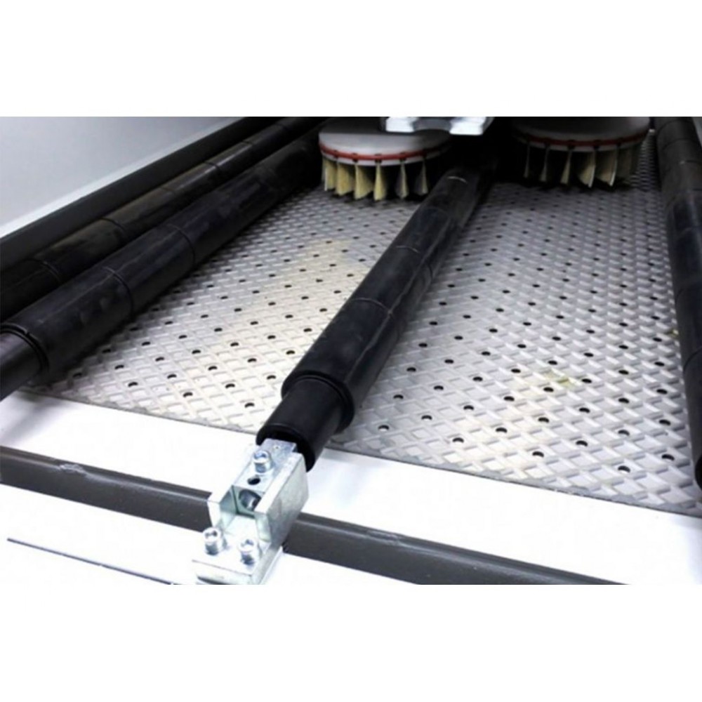Шліфувальна машина оснащена 6-циліндровими щітковими шліфувальними агрегатами з автоматичним регулюванням висоти, швидкості обертання і напрямку. Різьба на виробі відшліфована і загрунтована. Легко замінні щітки забезпечують зручність для оператора. Його здатність обертатися в двох напрямках дозволяє використовувати різну зернистість на 2-х поверхнях.
