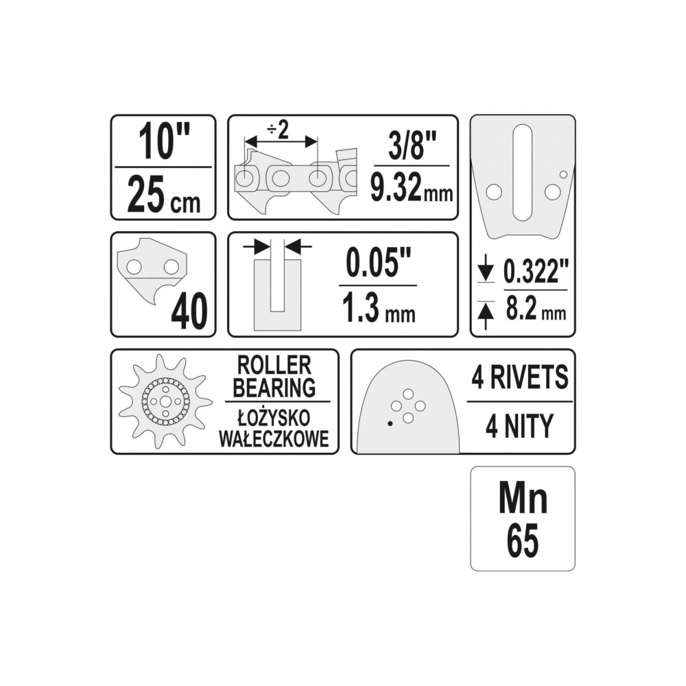 Шина направляюча ланцюгової пили YATO l= 10"/ 25 см (40 ланок) для ланцюгів YT-84948, YT-84960