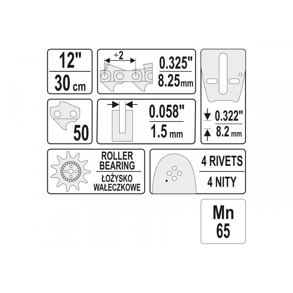 Шина направляюча ланцюгової пили YATO l= 12"/ 30 см (50 ланок) для ланцюгів YT-849395, YT-84963