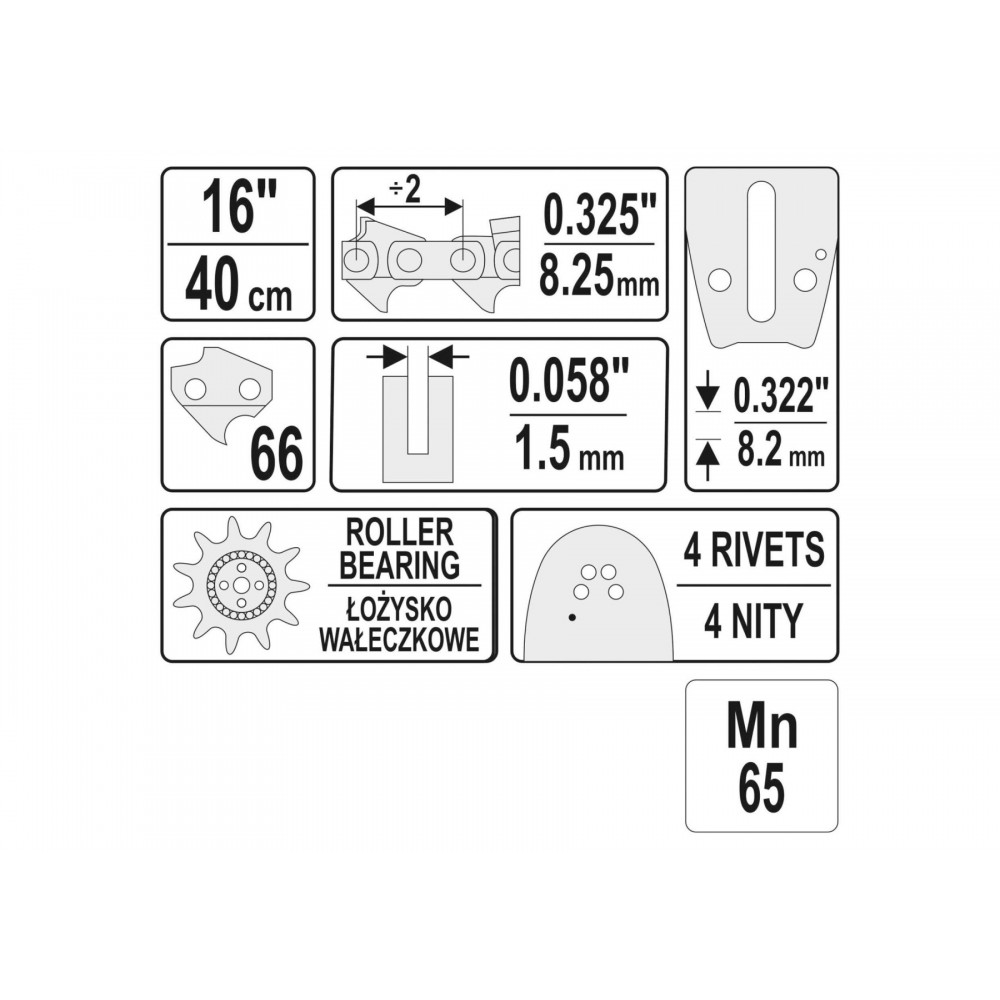 Шина направляюча ланцюгової пили YATO l= 16"/ 40 см (66 ланок) для ланцюгів YT-84942, YT-84963