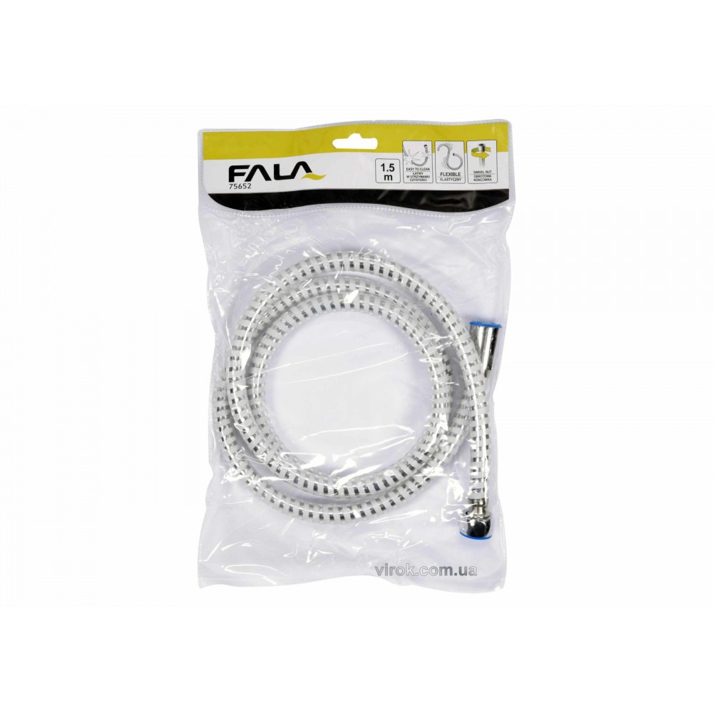 Шланг для душу FALA 75652 доповнить неповний змішувач для ванни та душу або замінить пошкоджений шланг. Вибір доступної довжини дозволяють ідеально підібрати шланг у змішувач, забезпечуючи комфорт використання. Виготовлений з ПВХ.