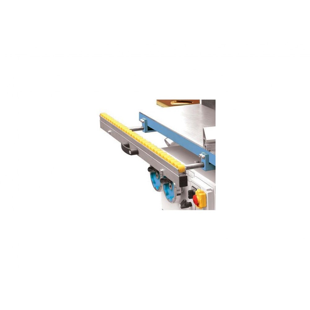 Важкий машинний корпус, який не піддається на викручування й вібрації винятково стабільний. Шліфувальний агрегат може регулюватися на 45°. Осциляція шліфувальної стрічки з окремим мотор – редуктором. Регульований по висоті шліфувальний стіл для використання на всю ширину стрічки. Можливість швидка переналагодження від шліфування шпону до шліфування масивної деревини. Включається додатковий стіл переміщаючись по висоті з аспірації для шліфування радіусів. З пружинним обтягування стрічки, що забезпечує автоматичное компенсування на велика різниця.