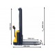 Штабелер обладнаний необслуговуваним герметичним акумулятором AGM ємністю 75 Ач, контролером для захисту акумулятора від перепадів напруги, індикатором заряду акумулятора і вбудованим зарядним пристроєм. Міцна сталева конструкція забезпечує високу жорсткість і стабільність. Спеціальна система передає поворот від ручки одразу на колесо, що дозволяє зручно переміщати штабелер на короткі відстані і маневрувати на обмеженому просторі. Швидкість руху без навантаження - 4 км/год, з навантаженням - 3,5 км/год. На нашому сайті ви можете швидко замовити цей штабелер ціна якого вигідна за рахунок прямих поставок від виробника.