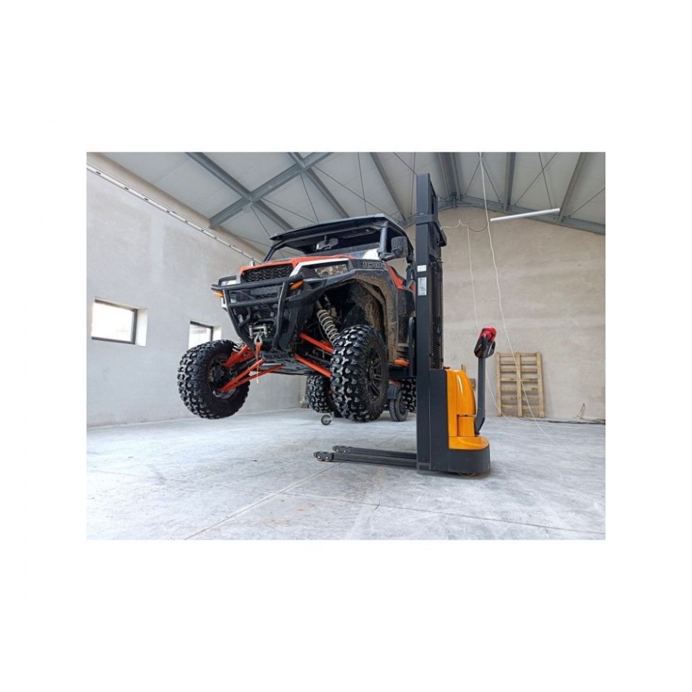 Штабелер Cormak Q15E35 з електричним приводом і підйомом використовується для піднімання вантажів вагою до 1500 кг на висоту до 3500 мм. Потужність електродвигуна підйомного механізму становить 2 кВт, потужність приводу - 750 Вт.