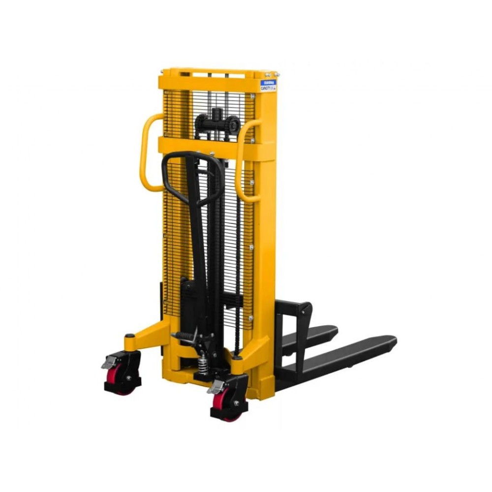 Управління підйомом і опусканням здійснюється за допомогою ножної педалі і ручного важеля. Завдяки міцним поршню та гідроциліндру підйом/опускання плавні та контрольовані. Колеса штабелера виготовлені з поліуретану, стійкі до стирання і легко рухаються навіть по нерівних поверхнях. Малий радіус повороту дозволяє точно маневрувати між стелажами, у вузьких проходах і на ділянках з обмеженим простором. Компактний у складеному вигляді, цей штабелер для складу зручний у зберіганні і транспортуванні.