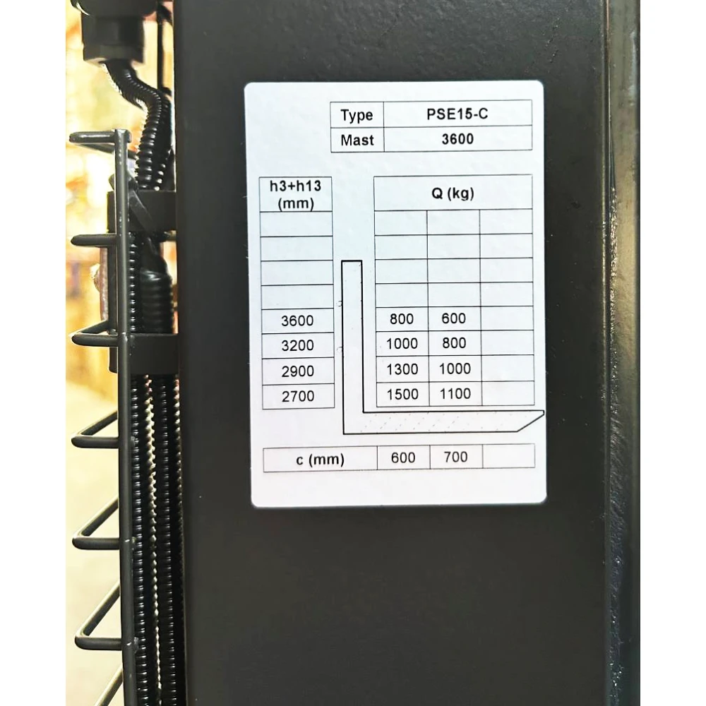 Характеристики Штабелер електричний GTM PSE15-C 3600 1,5т/3,6м з АКБ 2*12В 106 А*год (PSE15-C 3600)