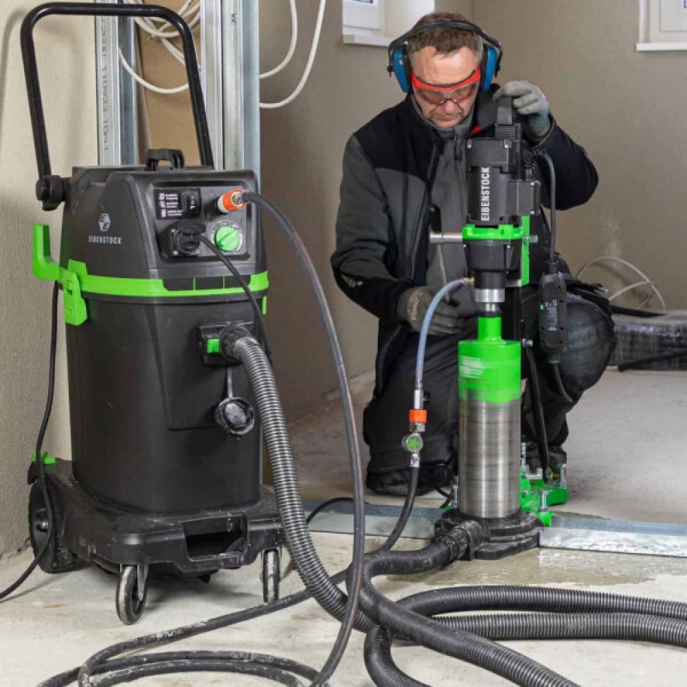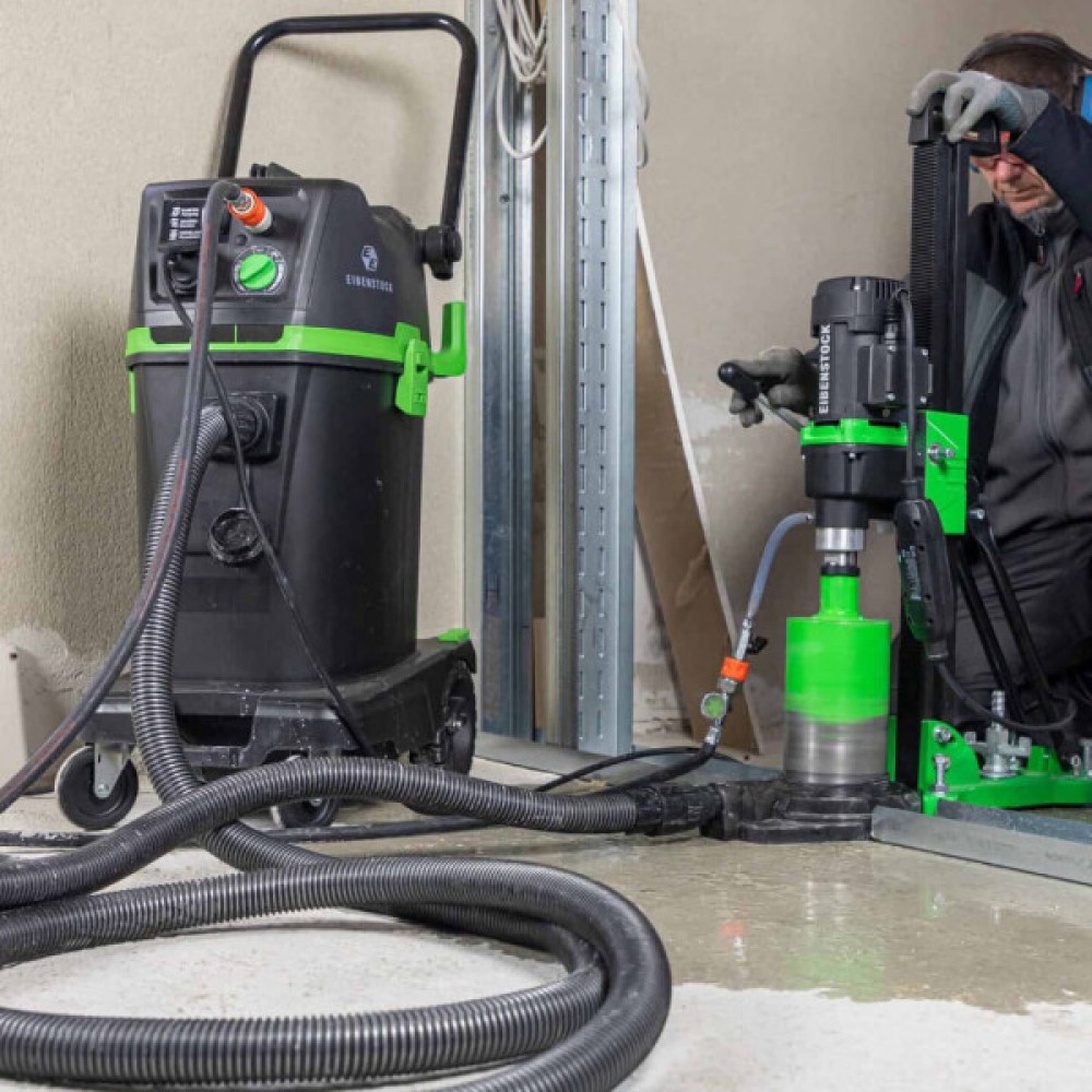 Система рециркуляції води Eibenstock WRS 50 призначена для ефективного мокрого буріння та прибирання будівельних майданчиків. Вона розроблена для роботи з великим об'ємом води та забезпечує високу продуктивність при всмоктуванні та рекуперації рідини. Модель не вимагає підключення до води на місці, що робить її зручною для використання в різних ситуаціях на будівельному майданчику.