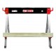 Ніжки зі стійкою опорою можна легко прибирати та транспортувати завдяки складним ніжкам і ручці. Ніжки повністю ховаються в корпус. Розміри виробу у відкритому стані: 1015x675x730 мм, у закритому стані: 1015x103x120 мм. Поєднання двох пильних коней дозволяє створити стійку робочу поверхню (додаткові матеріали, такі як стільниця, не входять до комплекту). Максимальне навантаження на одну пилку становить 500 кг.