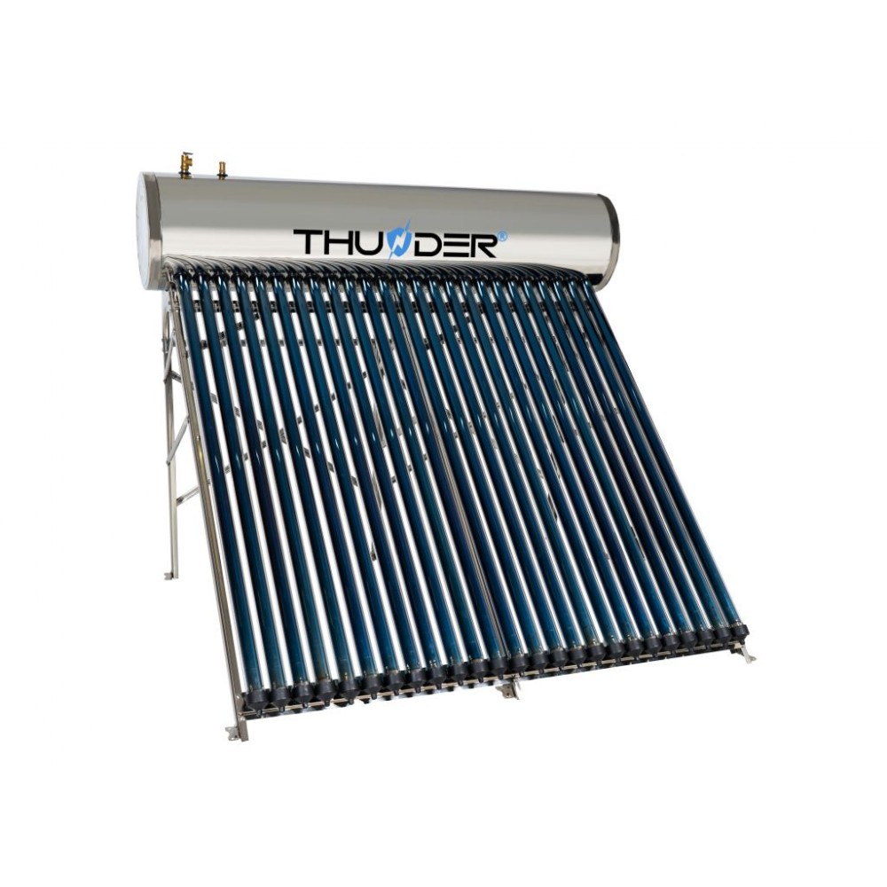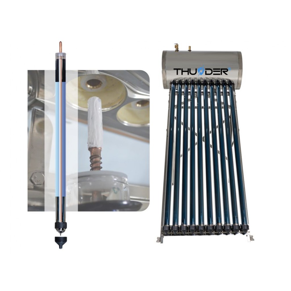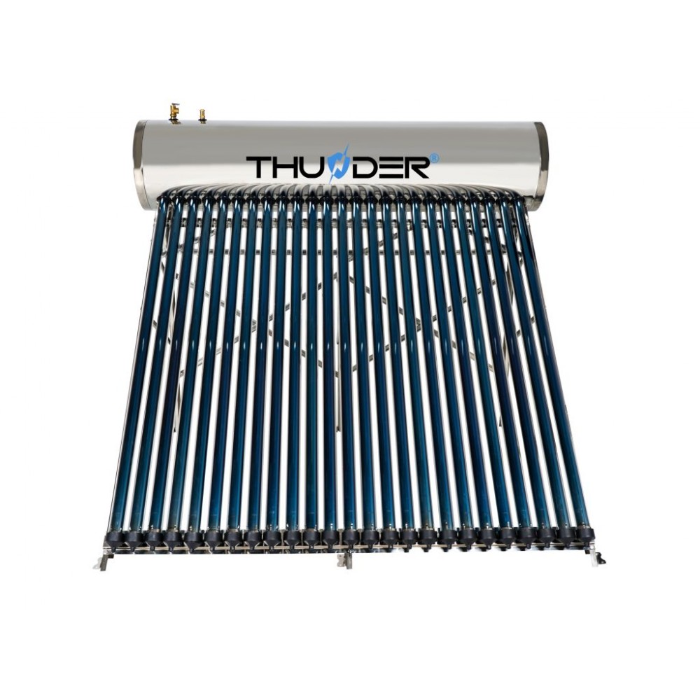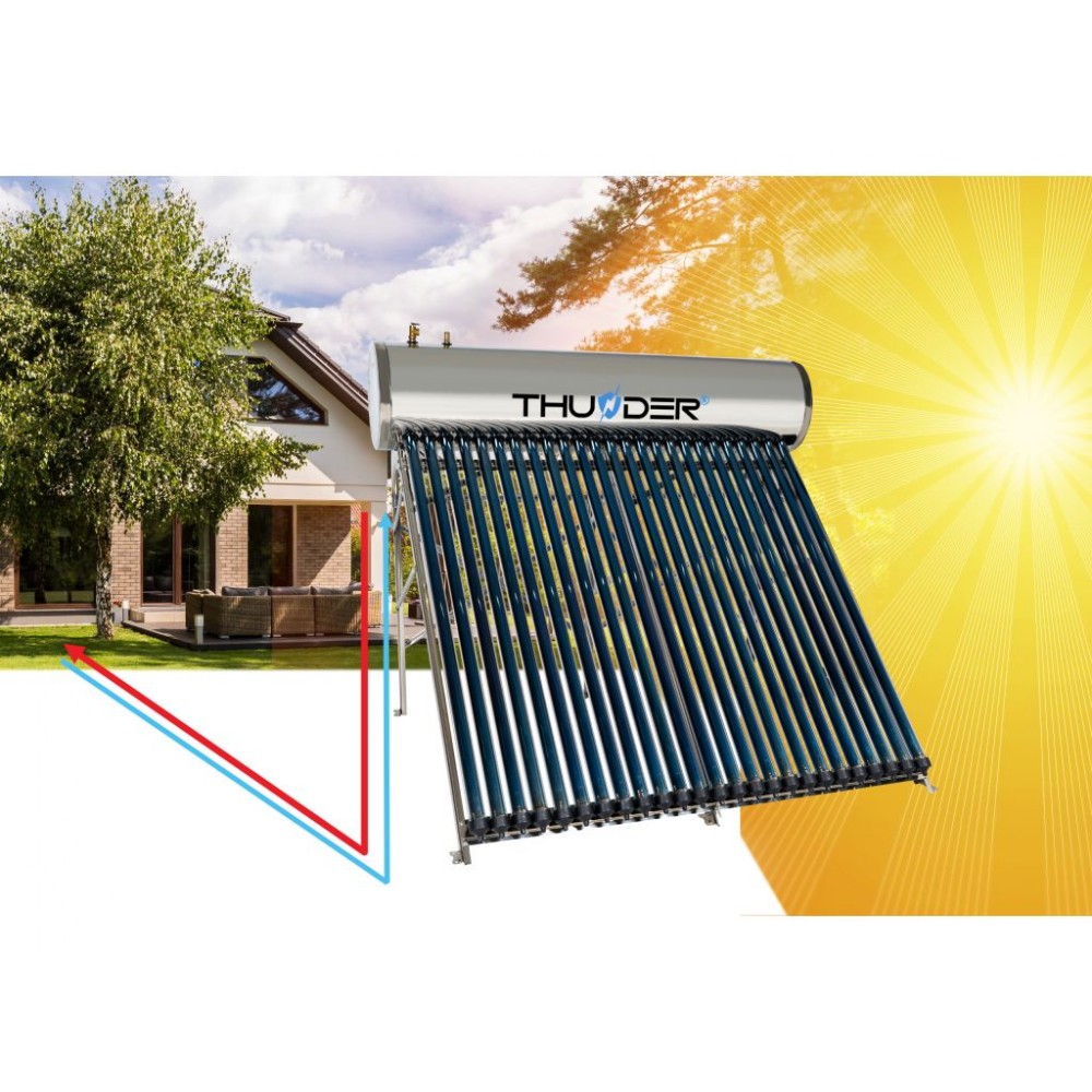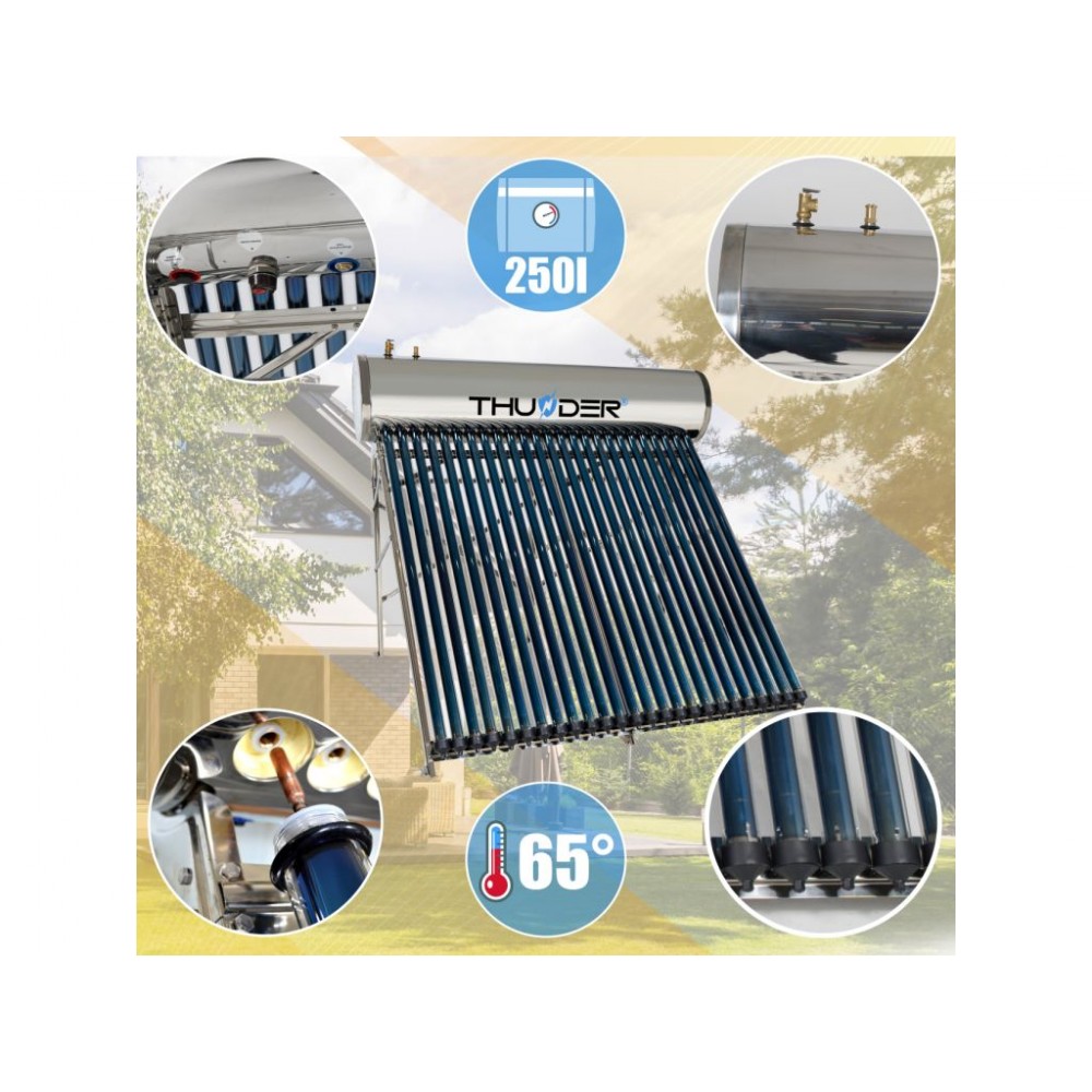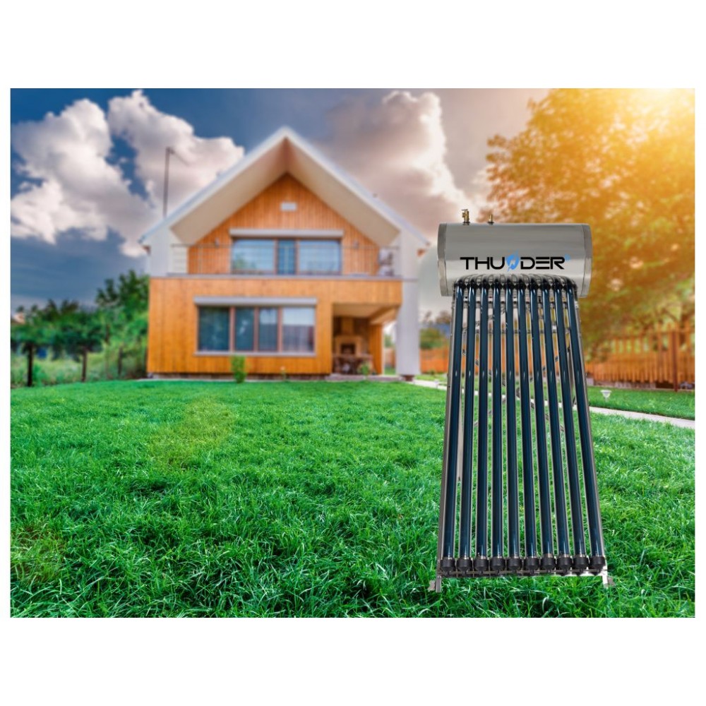Сонячний колектор THUNDER KS-250L - використовує сонячну енергію для нагріву води, допомагаючи зменшити витрати на електроенергію та викиди шкідливих газів в атмосферу. Ця інвестиція пропонує багаторічні переваги. Він складається з вакуумних труб, розташованих на даху або на землі, які ефективно збирають сонячну енергію і передають її в резервуар для води. І навіть якщо одна трубка пошкодиться, система продовжить працювати. Відразу підігріта вода може бути використана для санітарних потреб або опалення.