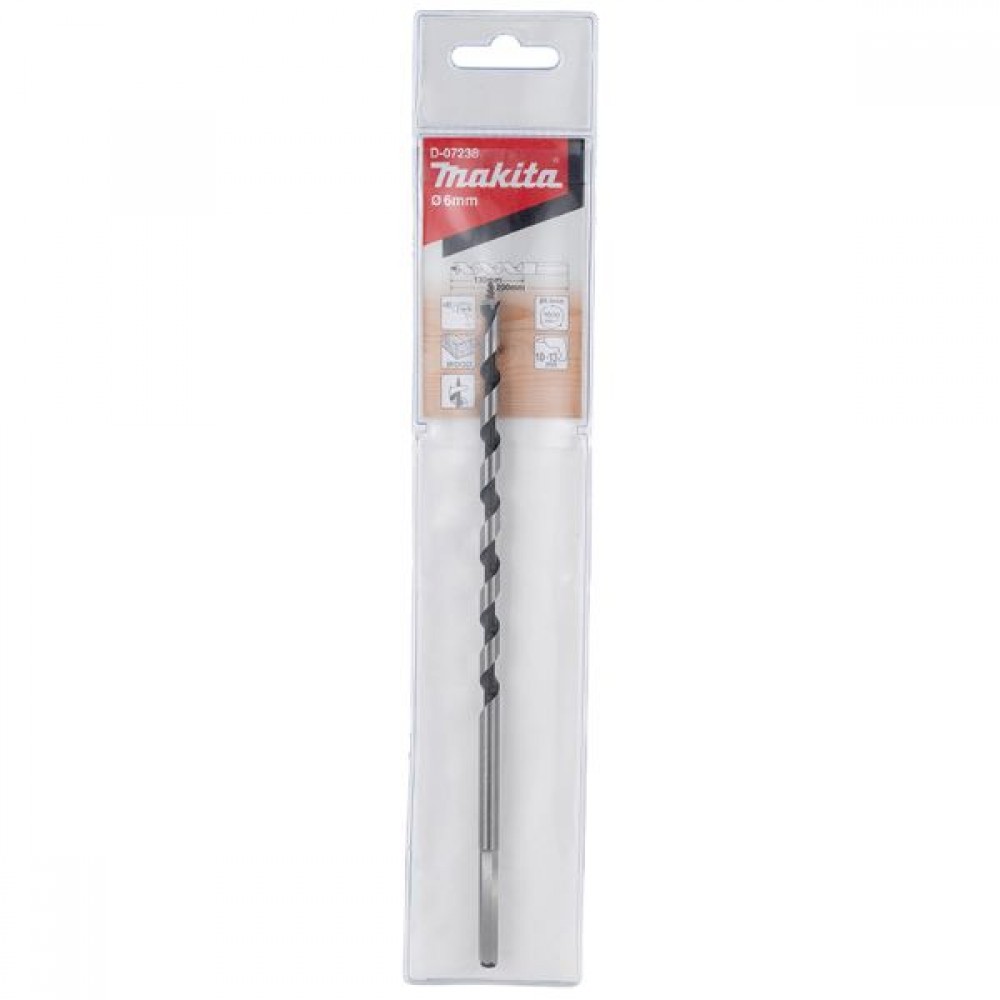 Спіральне свердло Makita 6x200 мм, D-07238: Довжина та точність для роботи з деревом