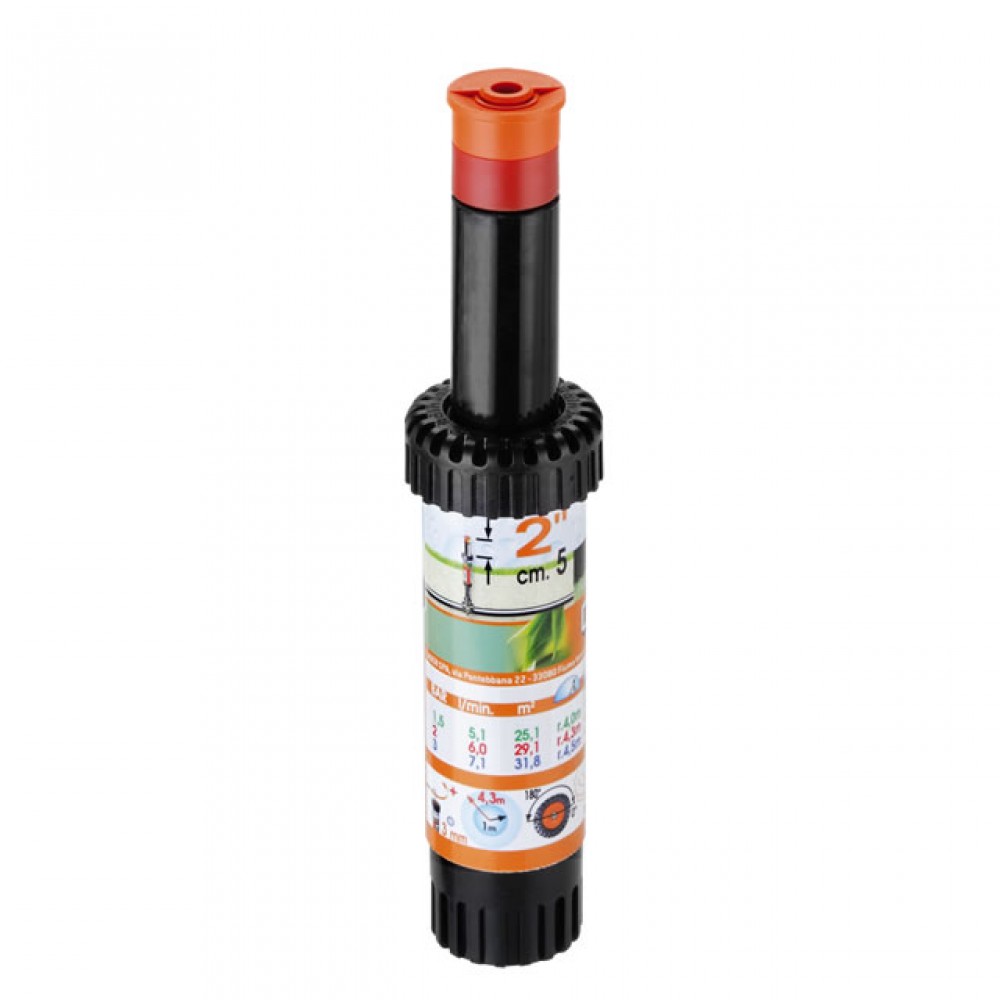 Спринклер Claber 90053 180°, 2" - професійний пристрій для рівномірного зрошення газону при використанні підземних систем автоматичного поливу. Може забезпечити полив ділянки площею до 31.8 м2. Обладнаний спеціальною форсункою, яка рівномірно розподіляє зрошення по ділянці, економлячи тим самим воду під час роботи. У представленій моделі не регулюється кут поливу і постійно становить 180°.
