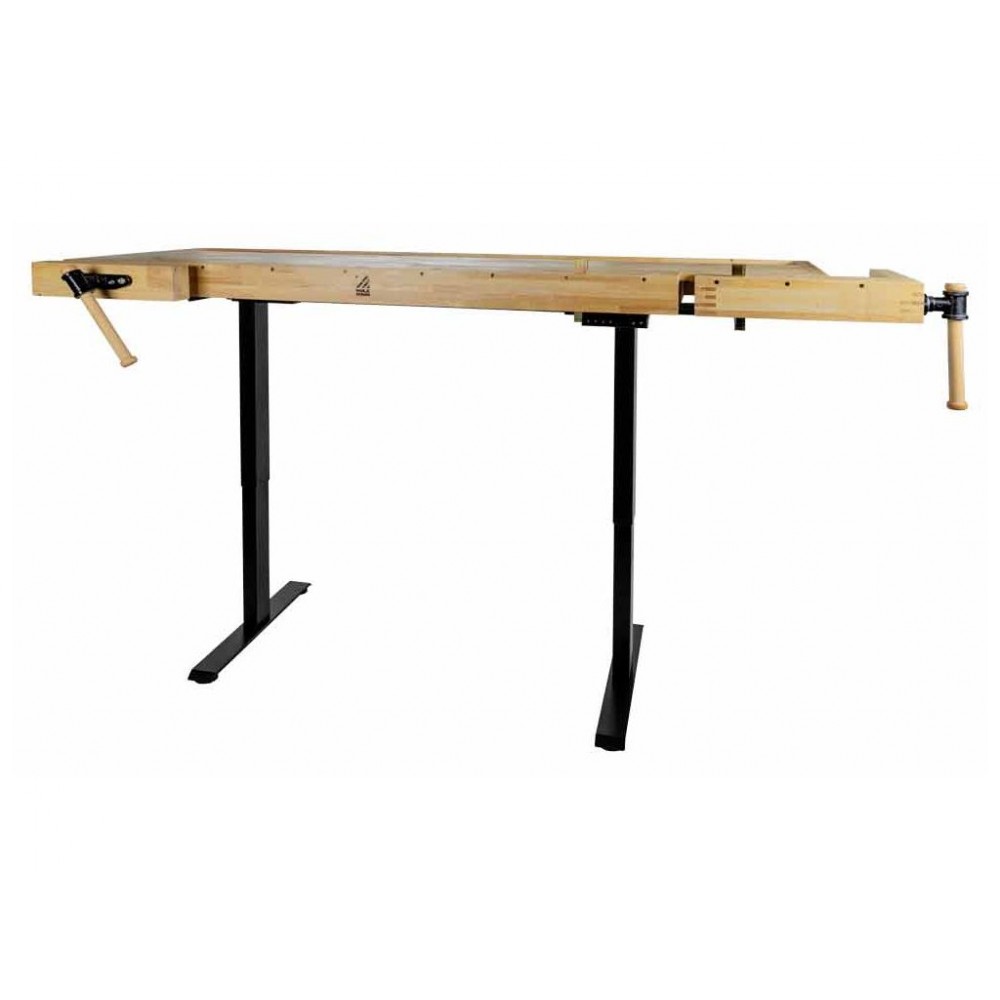 Стільниця виготовлена з каучукового дерева, має розмір 1885х615 мм і товщину 23 мм, що дозволяє зручно розмістити на робочій поверхні потрібний інструмент. Двоє лещат шириною 400 мм з максимальним ходом 125 мм роблять верстак ще більш функціональним. Є великий відсік для зберігання аксесуарів. Цей верстак з електричним регулюванням відповідає європейським стандартам якості та безпеки, що підтверджує сертифікат СЄ.