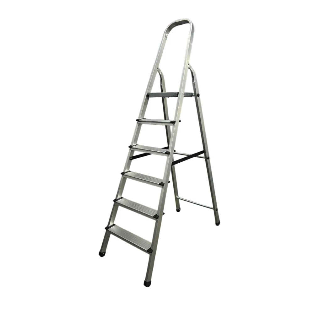 GTM KMH0106 - компактна алюмінієва драбина у формі односторонньої стрем'янки, яка чудово підходить як для побутового, так і для професійного використання. У даній моделі драбини 6 сходинок і максимальна висота до верхньої сходинок 120 см.
