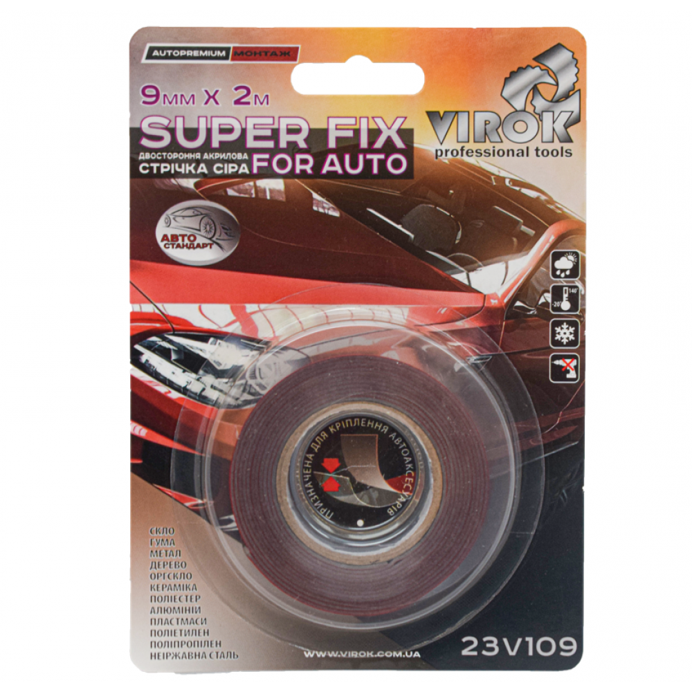 Двостороння акрилова стрічка сіра SUPER Fix for AUTO володіє