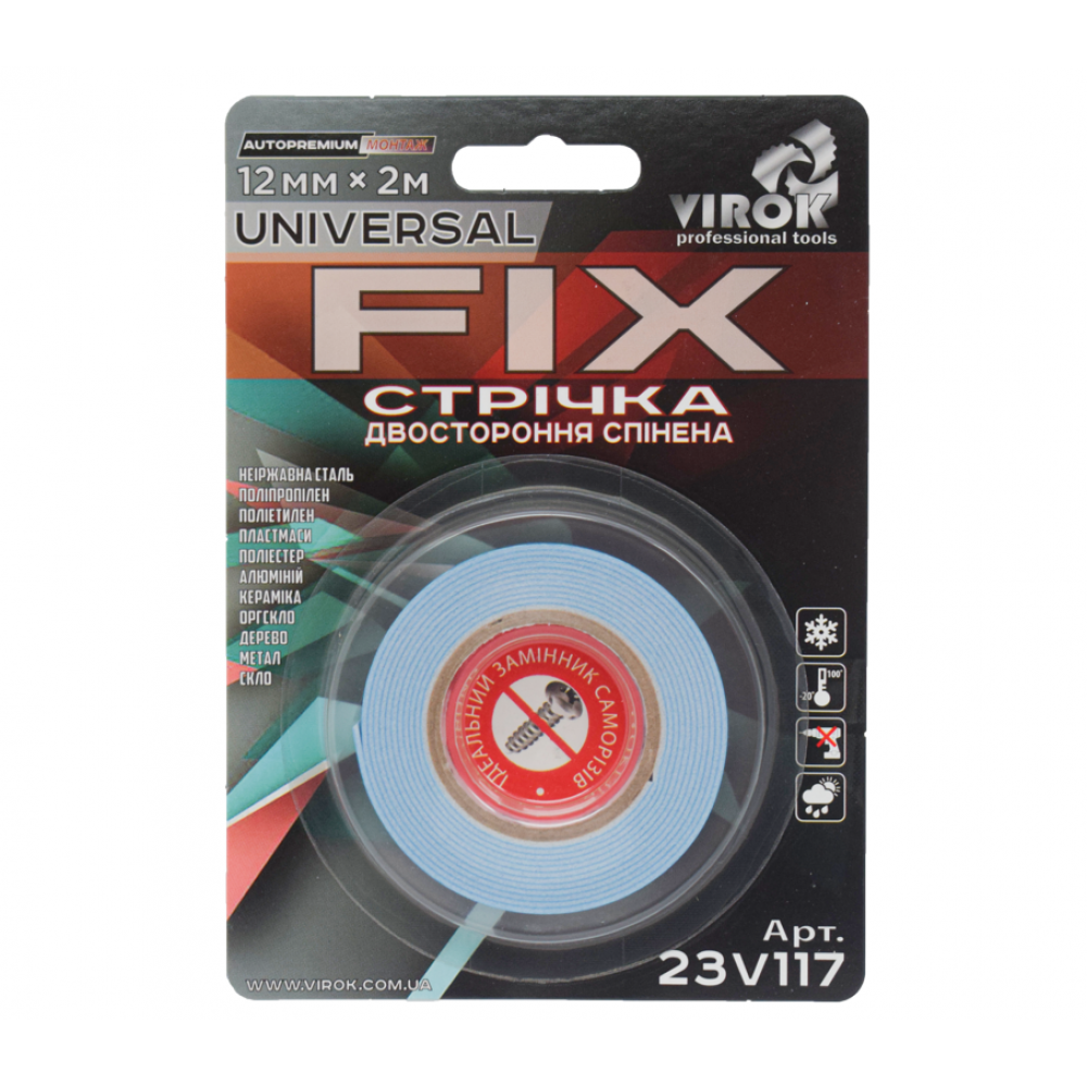 Двостороння спінена стрічка Universal Fix - виготовлена з спіненого поліетилену з мультифункційним клеєвим шаром на основі натурального каучуку,що забезпечує її універсальність застосування. Стрічка Universal Fix компенсує всі нерівності предметів, що монтуються. Ідеально з'єднує матеріали з дерева, металів, гуми, пластмас, оргскла, кераміки. Стрічка Universal Fix підходить для склеювання деталей та елементів з недосконалими геометричними формами, компенсуючи всі нерівності поверхонь та забезпечуючи довговічність кріплення.