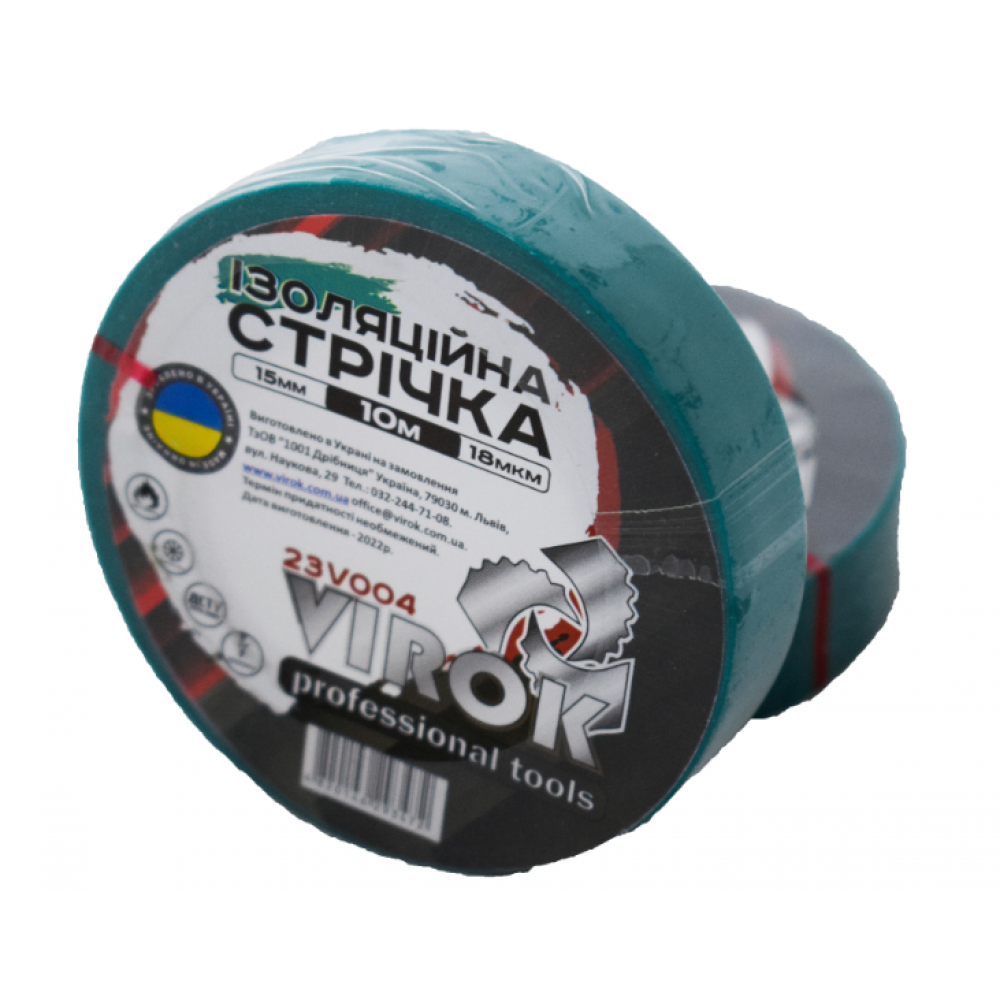 Стрічка ізоляційна VIROK : 15мм х 10 м (18мкм) ЗЕЛЕНА [15/240]