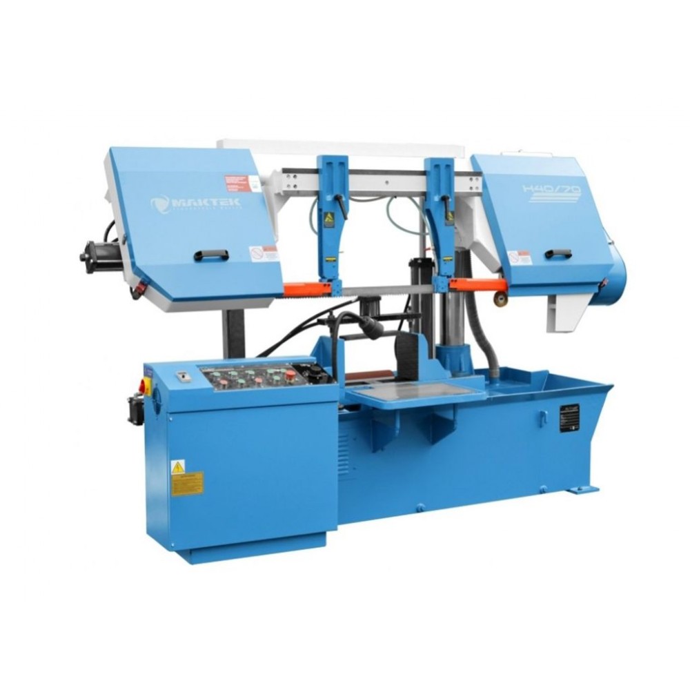 Двоколонний стрічкопильний верстат CORMAK H-40/70 є високопродуктивним верстатом для різання твердих матеріалів і профілів зі сталі, чавуну та кольорових металів у напівавтоматичному циклі. Рука пили спрямовується двома суцільними колонами. Подвійна колона забезпечує більшу жорсткість у процесі різання, а використання зовсім іншої технології напряму руки та стрічки значно скорочує час та підвищує точність різання. У стандартній комплектації верхній затискач для різання пакетів.