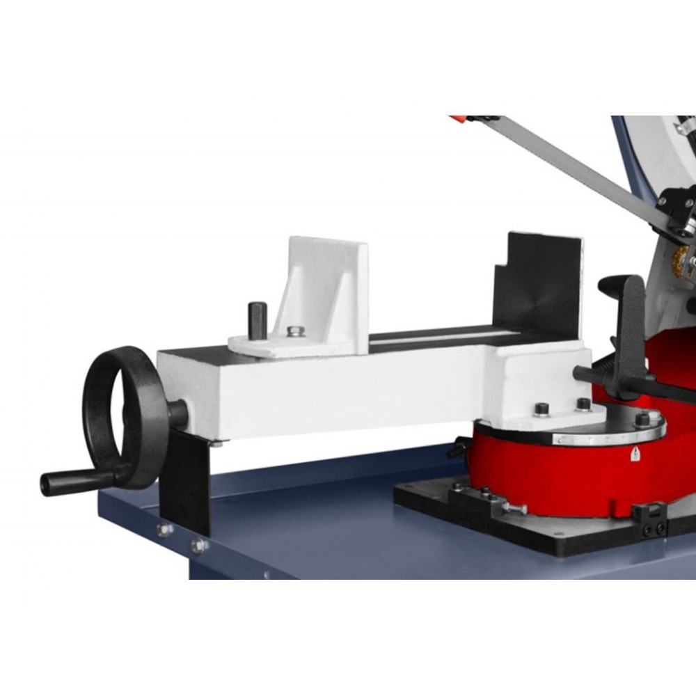 Даний верстат обладнаний ремінною передачею, регулювання швидкості відбувається за рахунок перекидання ременя на відповідний шків. Регулювання швидкості у стрічкових пилах по металу є важливою функцією, тому що вона має безпосередній вплив на якість та швидкість роботи з заготовкою. Регулювання швидкості дозволяє операторові адаптувати швидкість різання до конкретного матеріалу, що безпосередньо впливає на ефективність та якість обробки. Підбір відповідної швидкості допоможе уникнути перегріву полотна чи заготовки, що сприяє тривалішому терміну служби полотна та очікуваному результату від роботи, також регулювання допомагає уникнути зайвої вібрації.