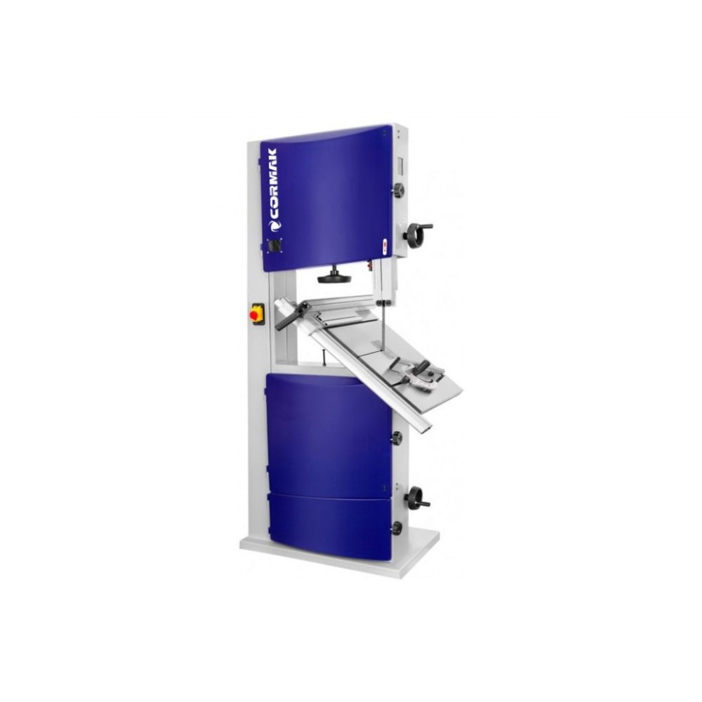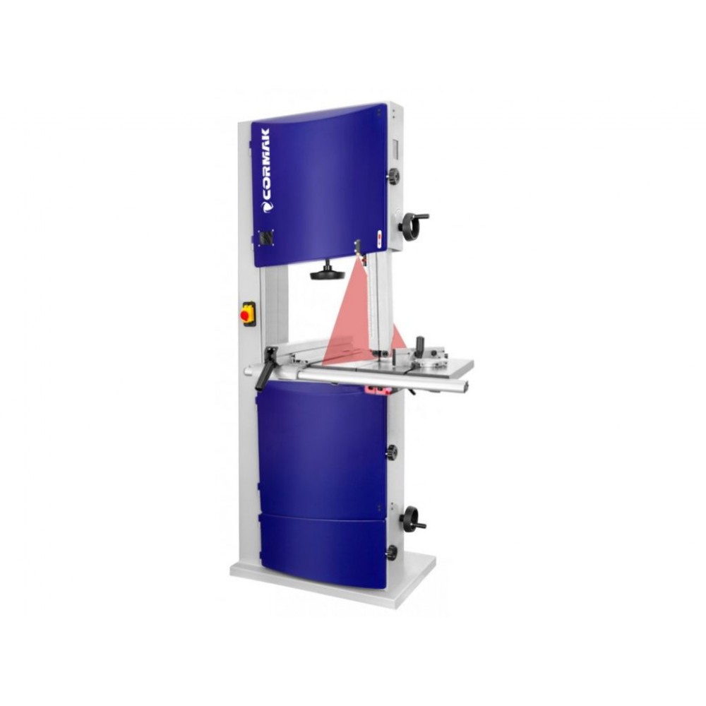 Стрічкова пила CORMAK HBS450N вертикального типу призначена для різання деревини, фанери, ДСП, МДФ, пластику і композитних матеріалів. Особливістю моделі є лазерний індикатор лінії різу, який забезпечує високу точність різів без потреби у нанесенні розмітки. Трифазний двигун потужністю 2,2 кВт/ 3,1 кВт забезпечує ефективну роботу з твердими матеріалами і стійкий до навантажень, а 2 швидкісні режими ( 7 м/с і 14 м/с) дозволяють адаптувати параметри роботи під різні матеріали. Зміна швидкості здійснюється через клинопасову передачу.