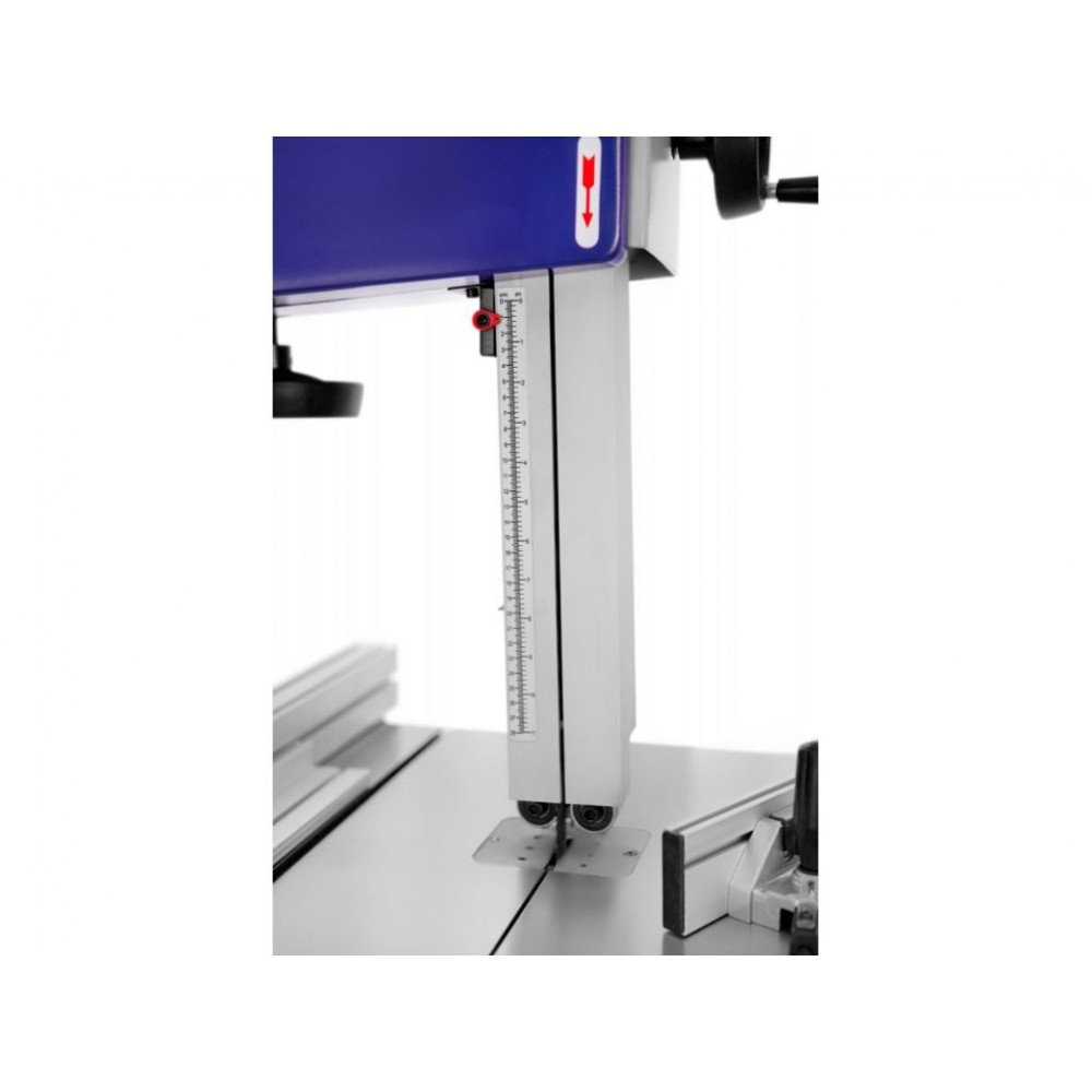 Максимальна ширина різу становить 465 мм, висота - 280 мм. Прецизійний чавунний стіл забезпечує стабільність заготовки і має нахил під кутом від -10° до +45° для виконання косих різів. Завдяки своїй точності і надійності, ця вертикальна стрічкова пила буде відмінним вибором для професійних майстерень і цехів.