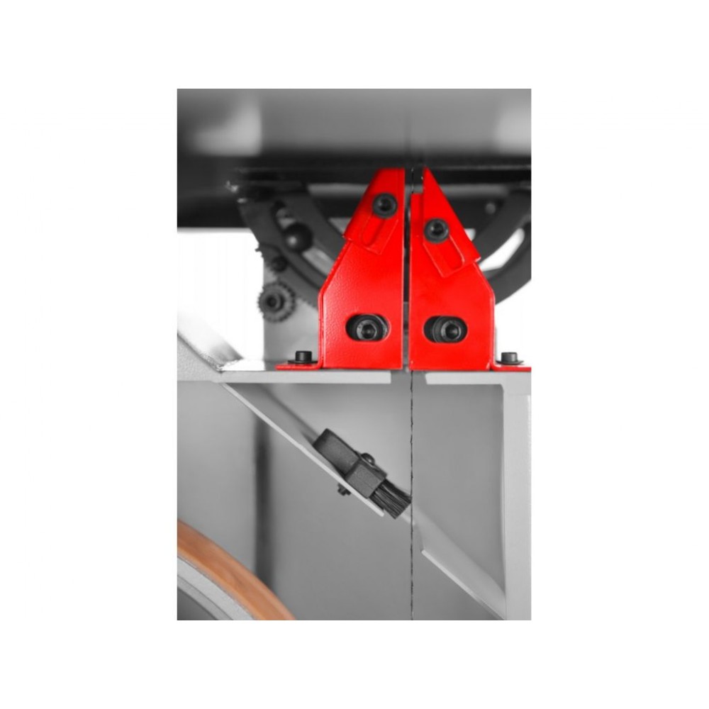 Чим більший діаметр маховиків, тим кращий результат роботи і більший ресурс ріжучої стрічки. Великі маховики допомагають підтримувати постійну швидкість навіть при різанні твердих матеріалів, зменшують навантаження на полотно і забезпечують плавну, безперебійну роботу, що позитивно впливає на якість різу.