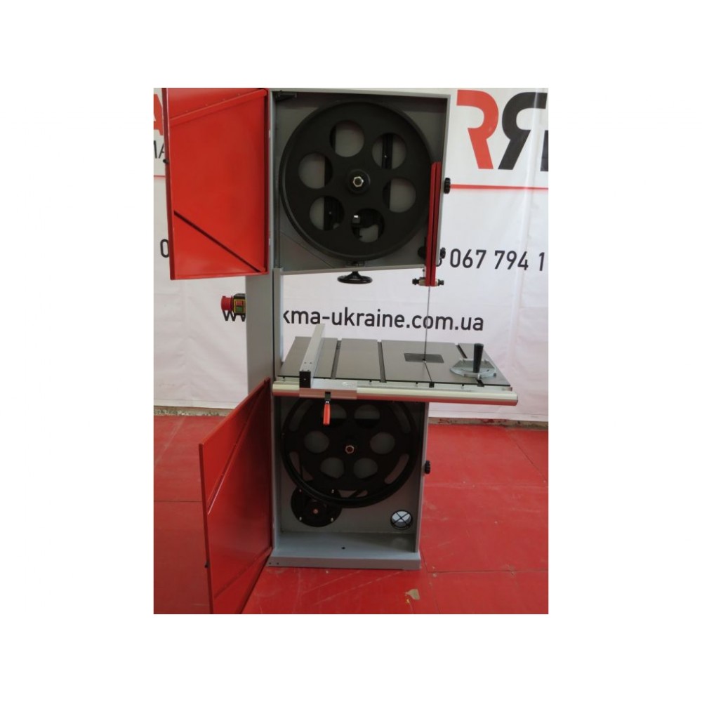 ![]() | Литі шківи з сірого чавуну, на відміну від алюмінієвих шківів, володіють великою масою й інерцію, тому не знижується їх швидкість і пила поводиться стабільно при різанні, особливо при вході в заготовку. Кожен шків проходить балансування. На нижньому шківі щітка для очищення від тирси. Шківи обгумовані. |