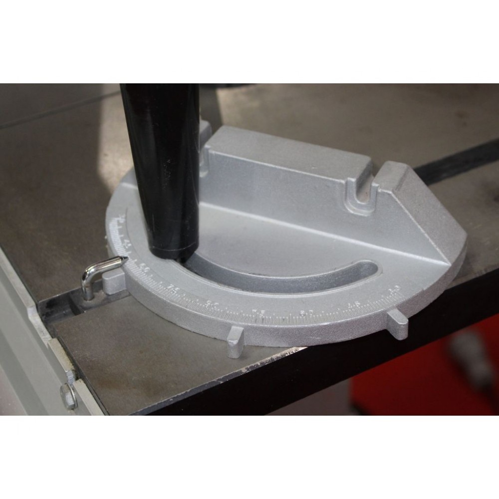 ЧАВУННИЙ СТІЛ Масивний робочий стіл з сірого чавуну. Направляюча лінійка на столі налаштовується за міліметровою шкалою. Штовхач з кутовою шкалою для зручності подачі заготовок. |