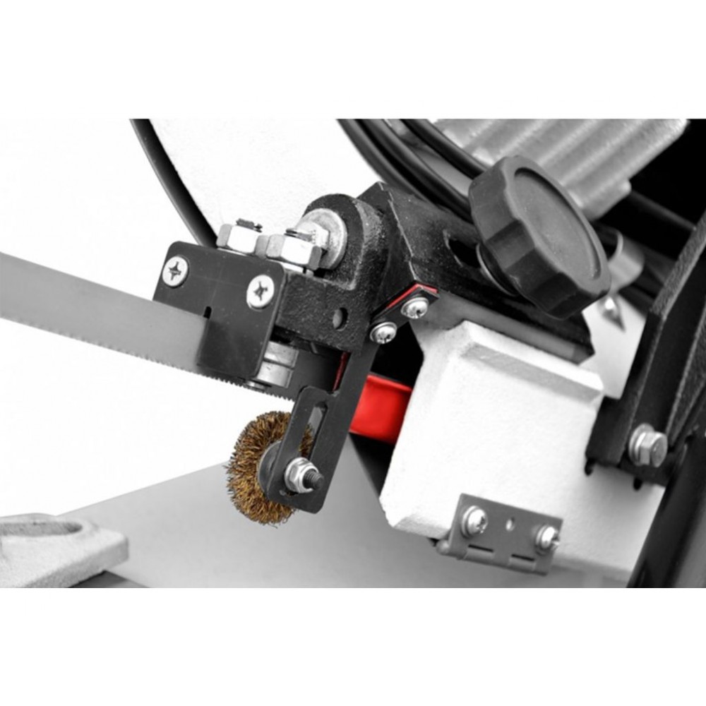 • Завдяки наявності очищувальних щіток забезпечується видалення стружки з пильного полотна, яке рухається.