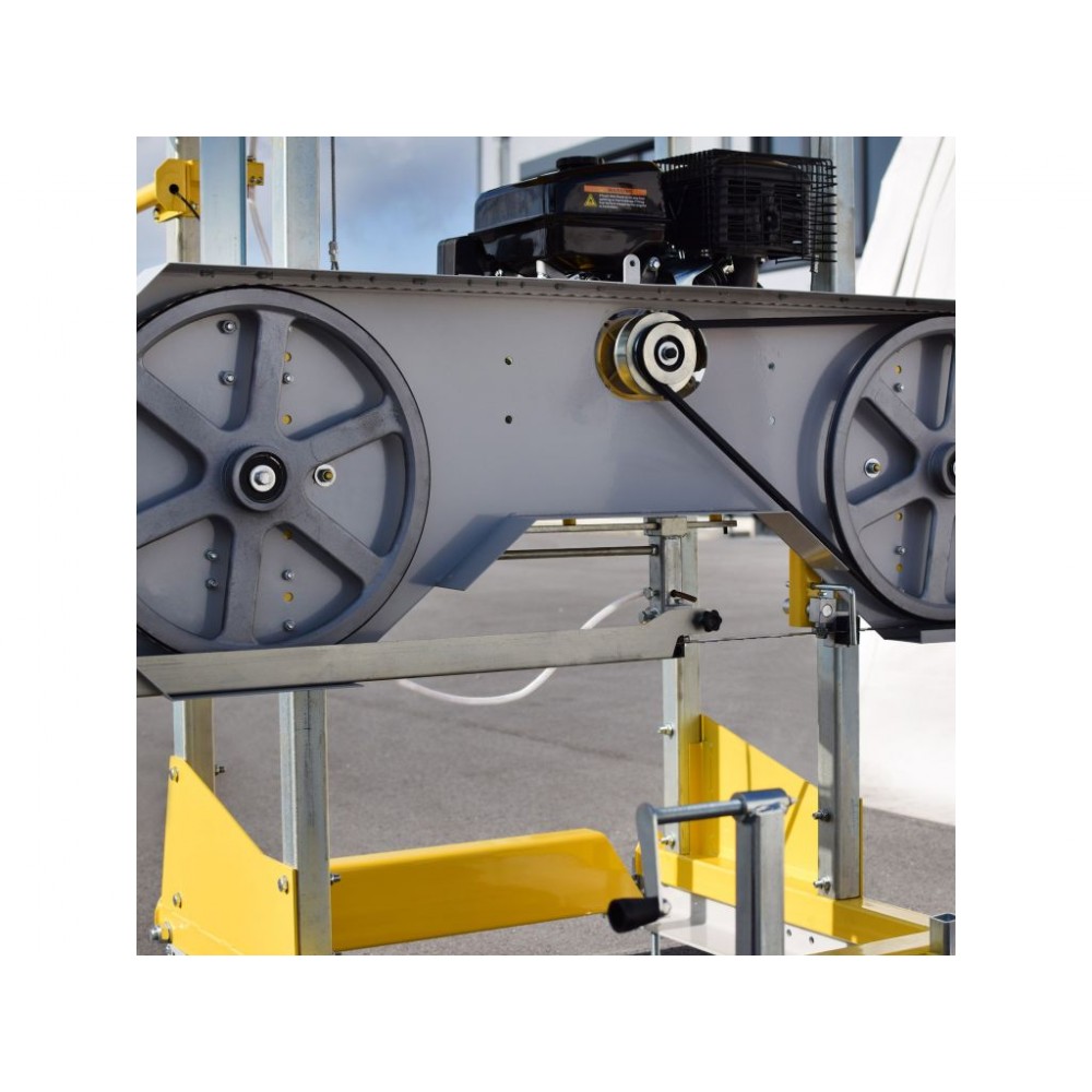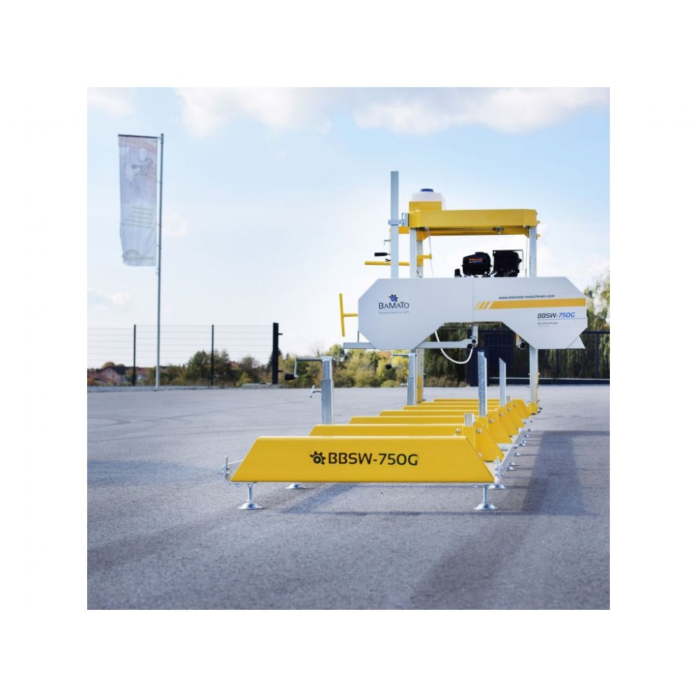 Новий стрічкопильний верстат BAMATO BBSW-750G - справжня потужна машина, оснащена бензиновим двигуном потужністю 9,0 кВт з електростартером. Збалансовані та міцні провідні колеса із чавуну забезпечують ідеальний результат різання. Цей верстат ідеально підходить для точного розпилювання м'якої, твердої та сухої деревини.