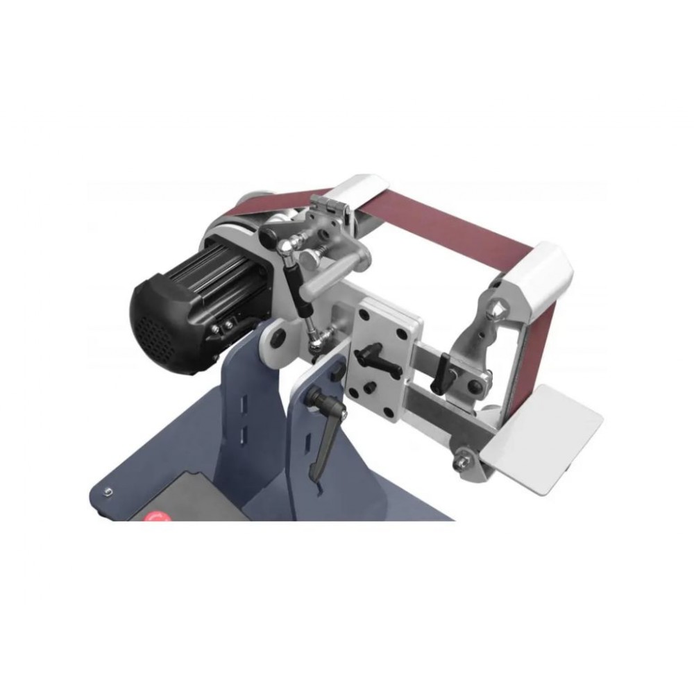 Перевагами верстата є легке і швидке налаштування кута шліфування, амортизатор, який гасить вібрацію та регулює натяг стрічки і її зчеплення з матеріалом, та сталеві опори для точного притискання заготовки до стрічки. Роликові направляючі стрічки на підшипниках дозволяють досягти максимальної точності обробки. Корпус виготовлений з міцної сталі і має високу надійність. Компактний розмір верстата і вага усього 20 кг забезпечують легке транспортування і зручне використання. Цей шліфувальний верстат по металу купити можна на сайті офіційного постачальника в Україні KMA.UA з гарантією 12 місяців.