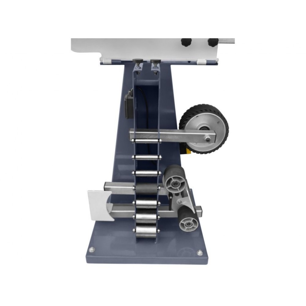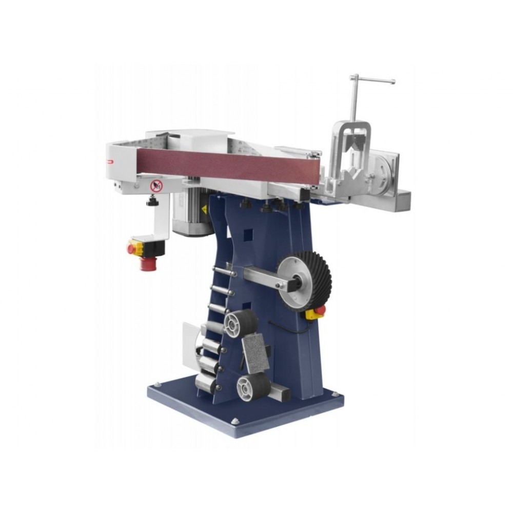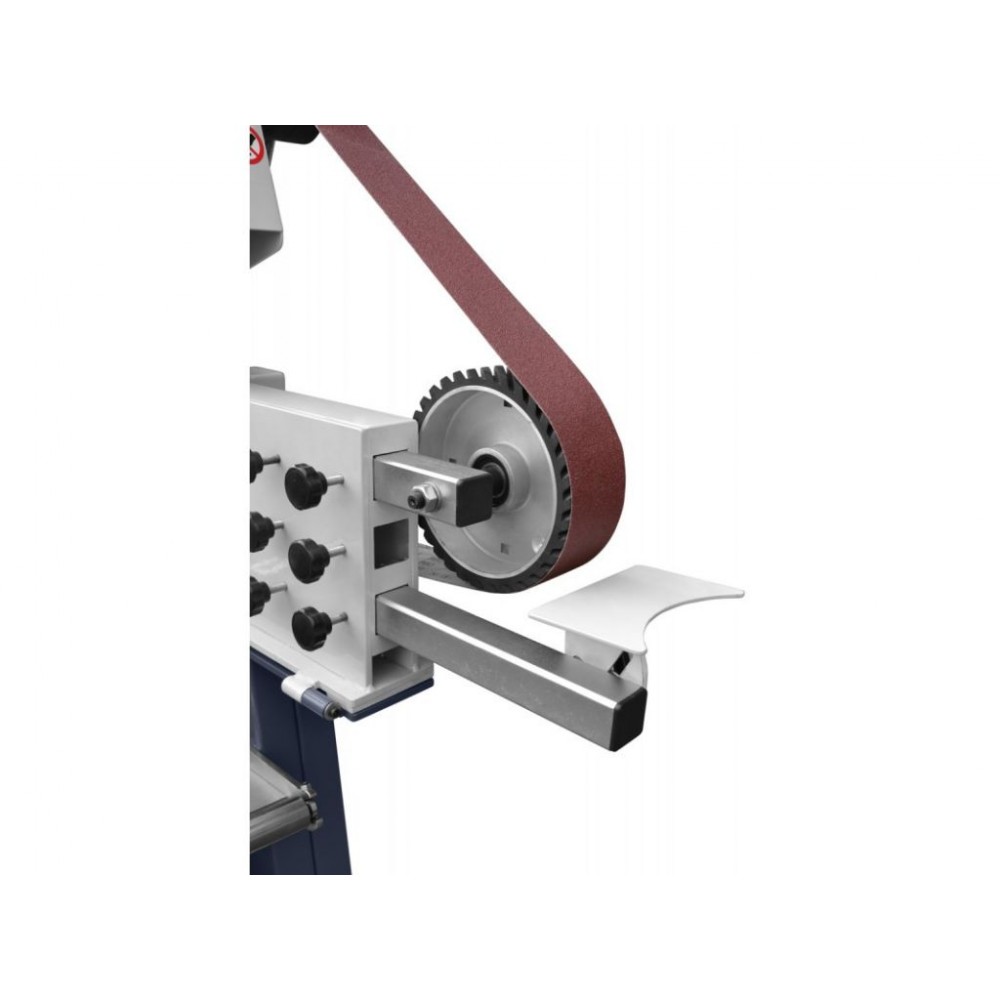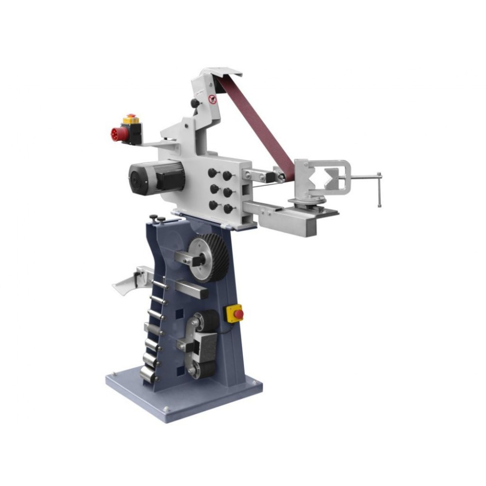2 швидкості шліфувальної стрічки, 14,5 м/сек і 29 м/сек, дозволяють підібрати оптимальний режим роботи. Прогумоване покриття ведучого колеса забезпечує плавний рух стрічки і тиху роботу верстата. Міцна підлогова конструкція з якісних матеріалів стійка до вібрацій і зношування, завдяки чому цей верстат шліфувальний стрічковий стабільний у роботі і має тривалий термін служби.