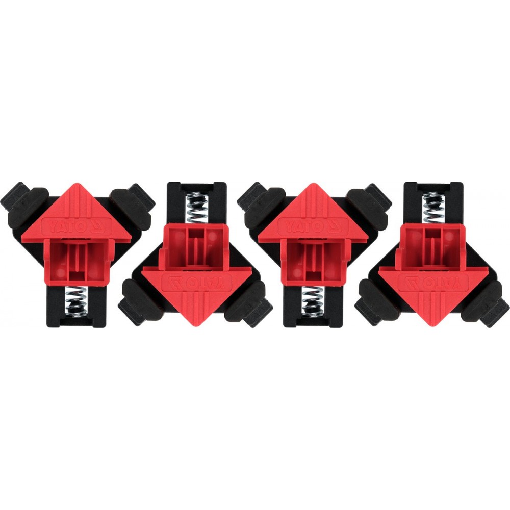 - Набір з чотирьох міцних пружинних кутових затискачів, призначених для затискання з'єднаних елементів під кутом 90 градусів.