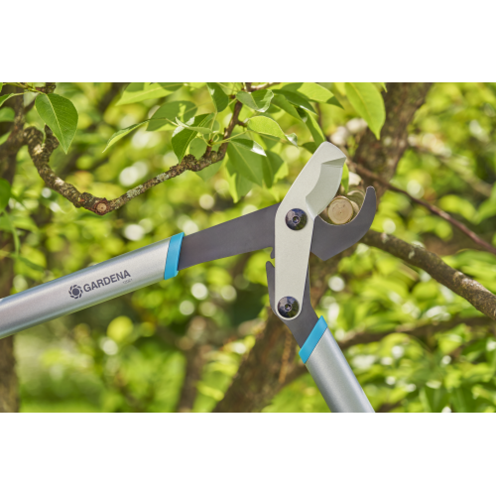 Сучкоріз Gardena EnergyCut basic 42 мм - ручний інструмент, призначений для обрізки живих гілок діаметром до 42 мм. Головною особливістю цієї моделі є наявність зубчастої передачі, яка дає змогу збільшити зусилля, що передаються, у 2,5 - 3 рази. Таким чином навіть дуже товсті гілки користувач зможе легко обрізати.