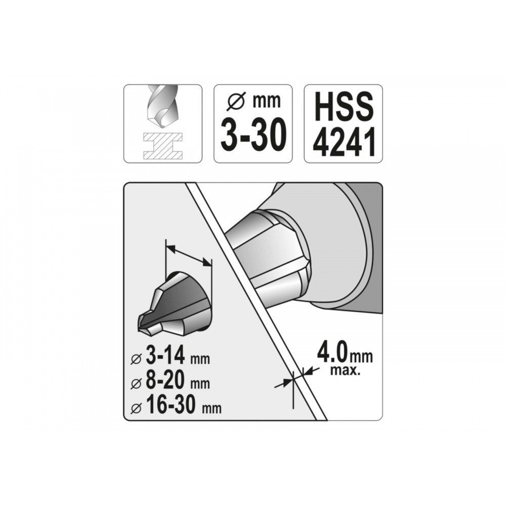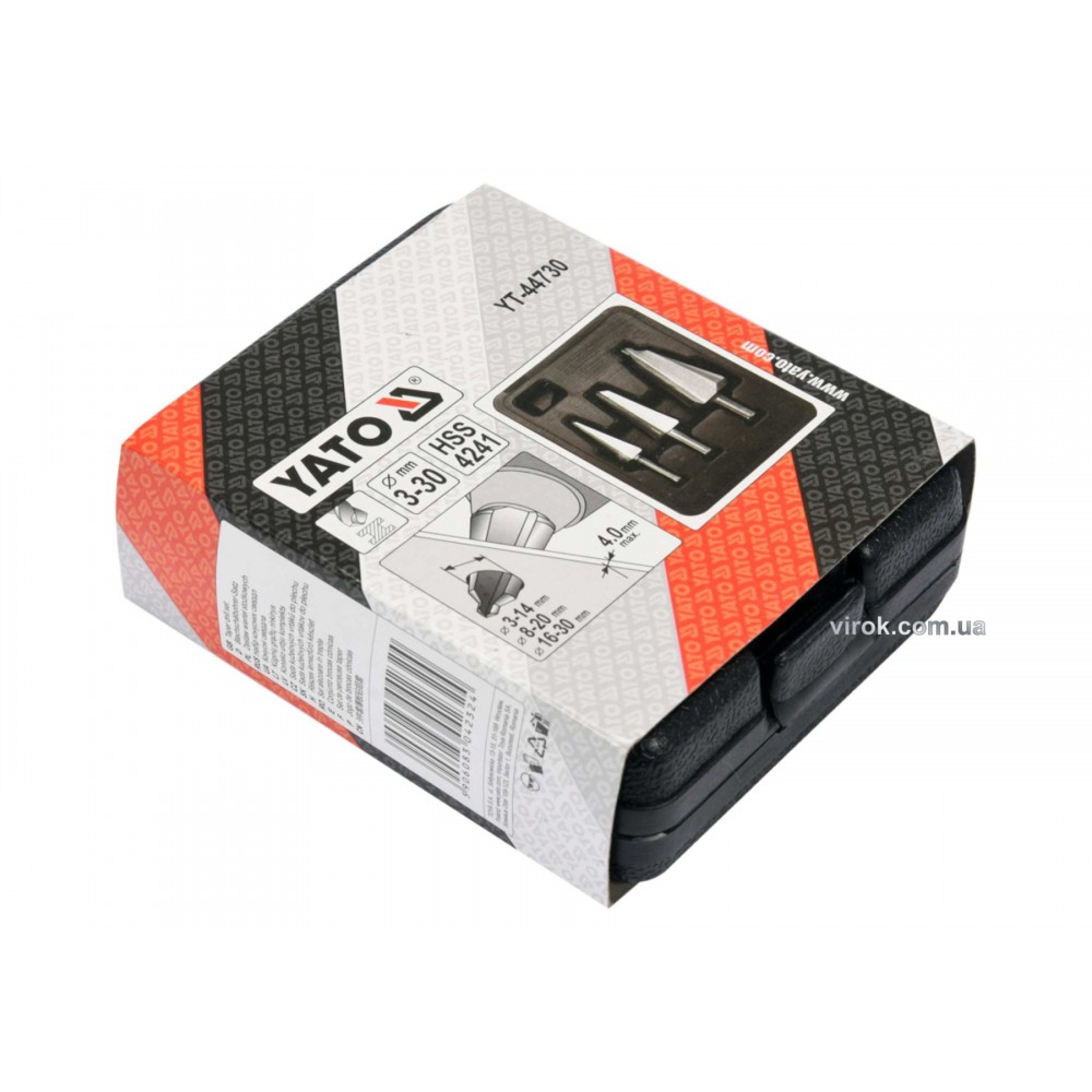 Набір YATO YT-44730 з 3 свердл. Виготовлені з міцної швидкоріжучої сталі HSS. Дозволяють робити точні отвори в легованій сталі, алюмінію, сталевих листах і ПВХ.