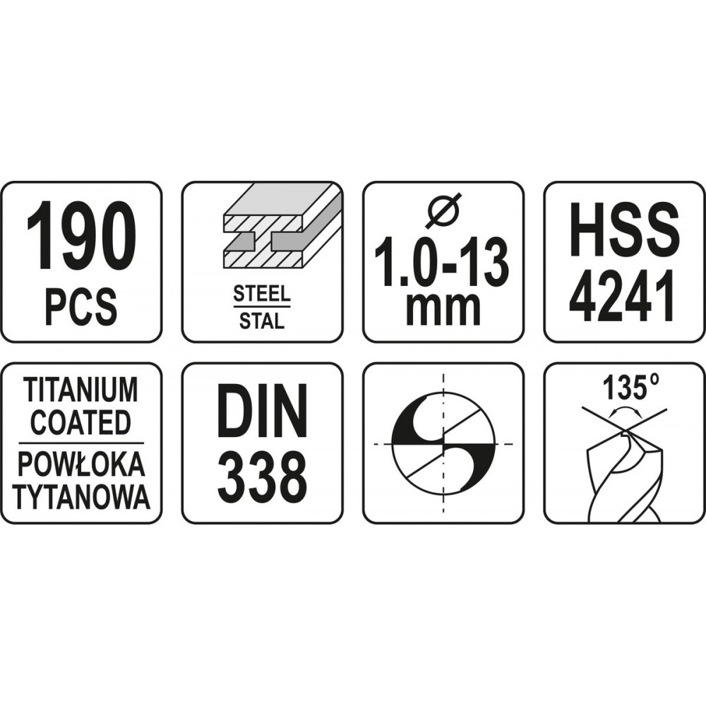 Свердла по металу титанові YATO : HSS-TiN Ø= 1-13 мм. компл. 190 шт