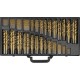 Набір свердел із циліндричним хвостовиком із HSS 4241. Завдяки покриттю з нітриду титану вони дуже ефективно відводять тепло та не тупляться під час роботи з твердою сталлю.