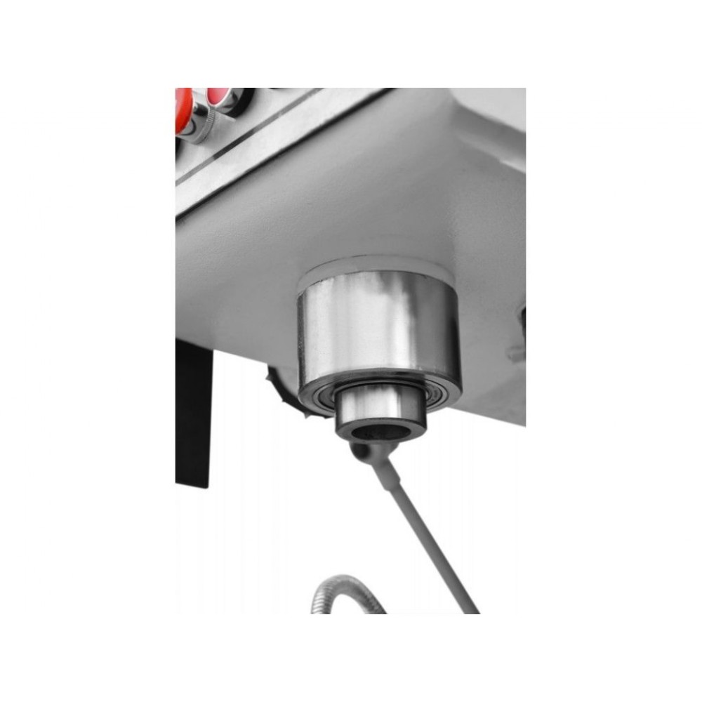 Верстат обладнаний системами безпеки відповідно до європейських норм. Кнопка аварійного вимкнення з самоблокуванням, для зупинки верстату при небезпечних ситуаціях. Відкидна кришка шпинделю яка захищає оператора, при піднятій кришці верстат не запуститься. На робочому столі є Т-подібні пази що допомагають зафіксувати деталь або дозволяють встановити додаткові фіксуючі елементи, такі як лещата.