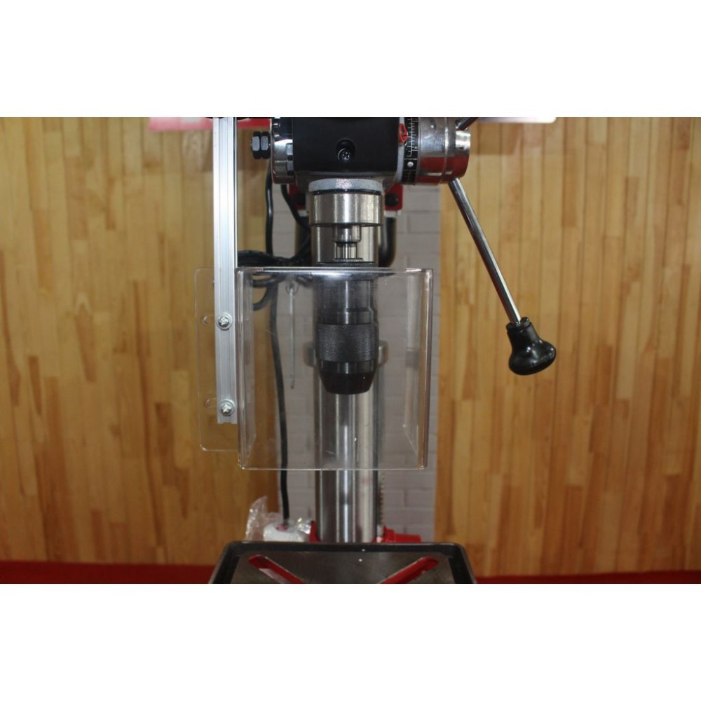 ДВИГУН Асинхронний двигун з захистом класу IP54. Практичний трьох-важільний маховик зі шкалою глибини свердління. Захисний екран забезпечує захист оператора від стружки, яка летить і не допускає потрапляння в зону обробки частин одягу. |