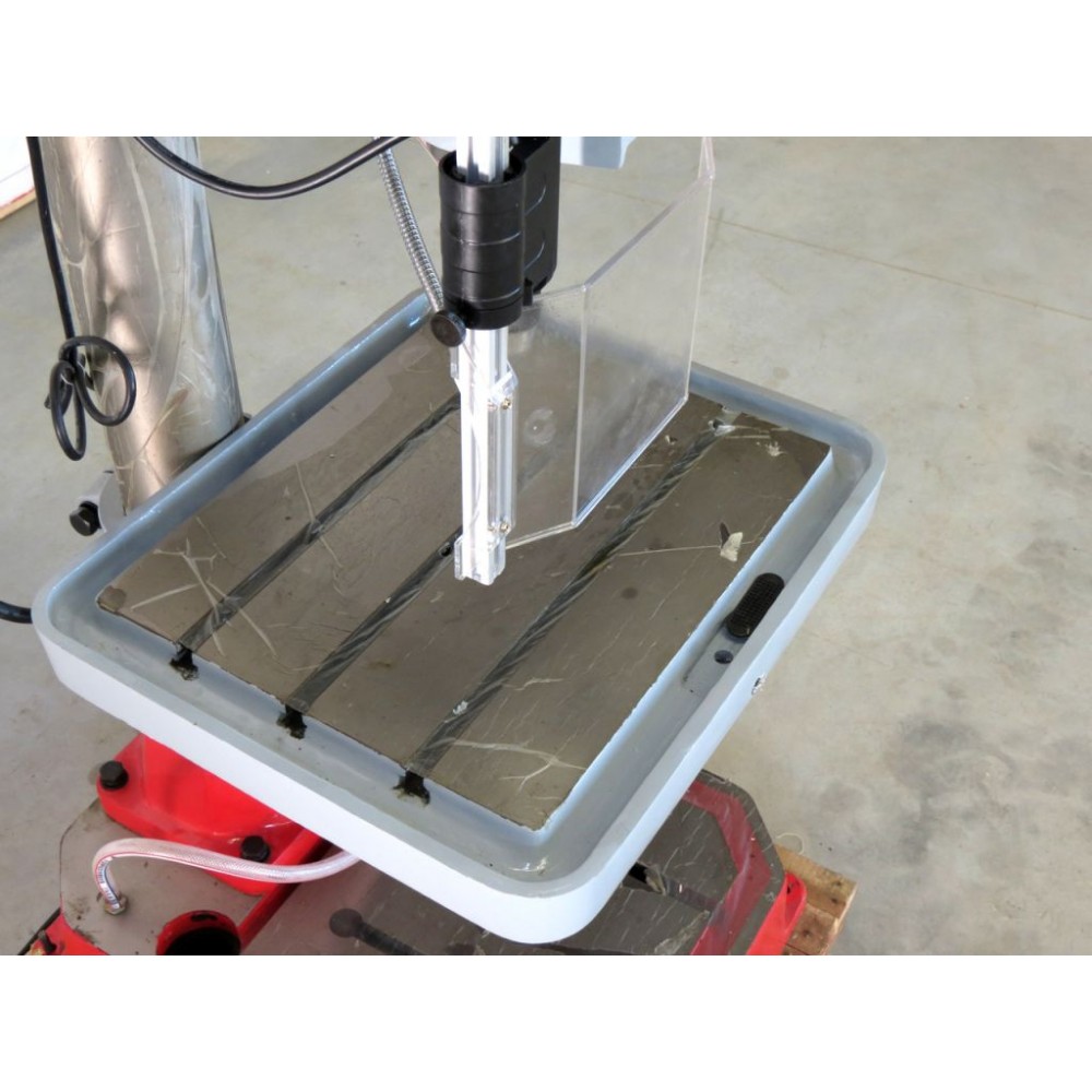 Врізна подача пінолі за допомогою трьох-важільного маховика і прецизійного маховика з градуюванням глибини Відкидне огородження затискного патрона з оргскла. |