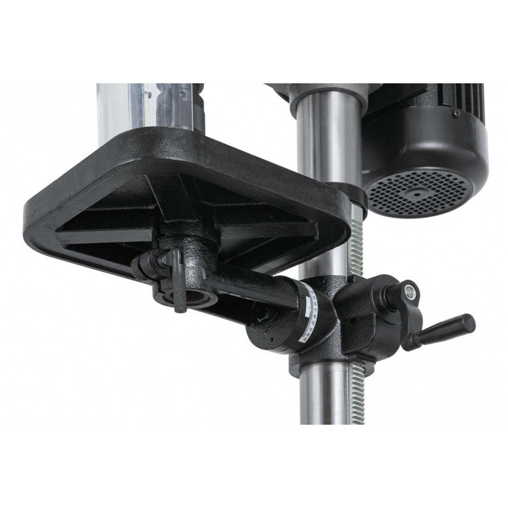 Хід пінолі шпинделя становить 80 мм. Для контролю глибини свердління передбачена шкала з міліметровою та дюймовою розміткою, а також регульований обмежувач.