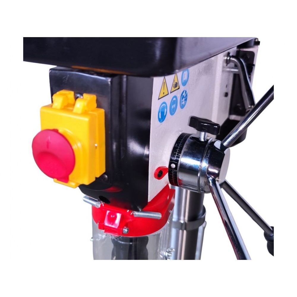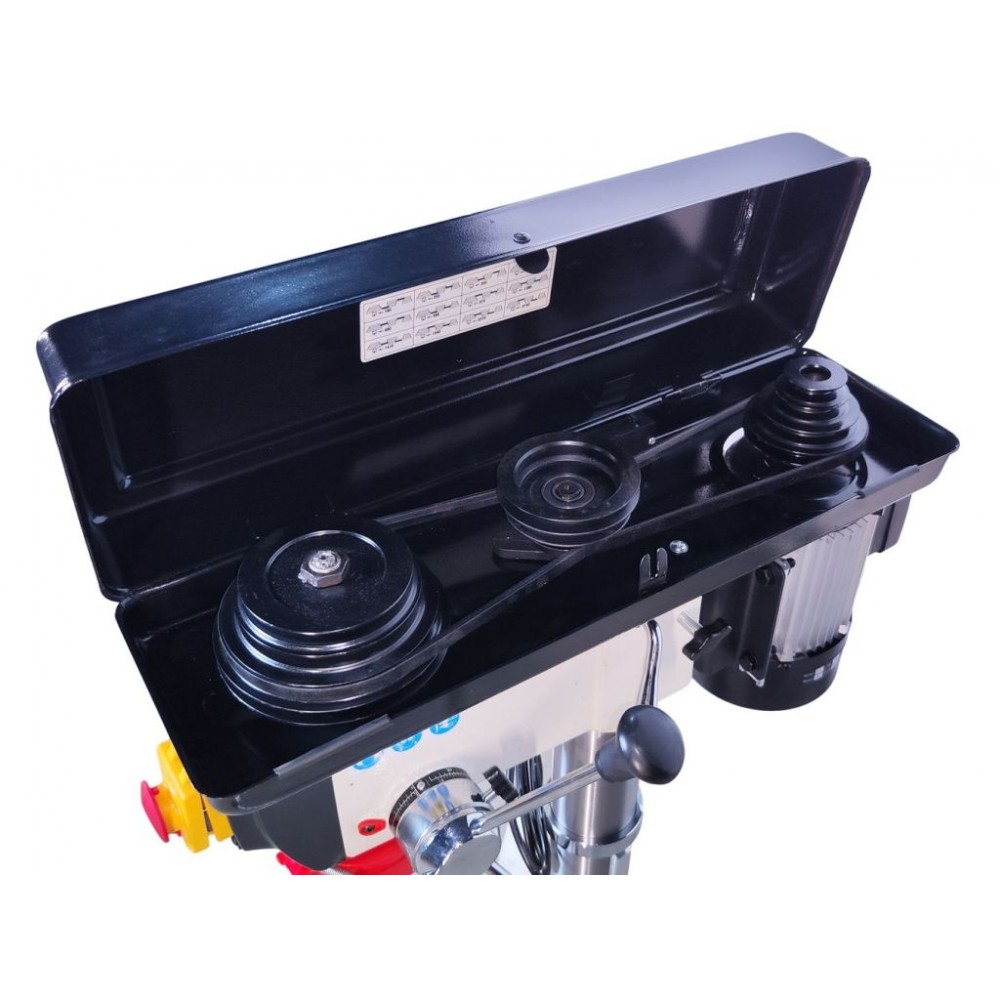 Двигун потужністю 600 Вт забезпечує 12 швидкостей обертання шпинделя у діапазоні 180-2740 об/хв. Підйом і опускання шпинделя здійснюються за допомогою ергономічної ручки на бічній панелі. Стіл верстата регулюється по висоті і куту нахилу відносно шпинделя, що дозволяє якісно виконувати різні завдання. Для роботи з габаритними заготовками стіл можна зняти і у якості опори використовувати основу. Міцна конструкція з високоякісних матеріалів гарантує тривалу і надійну службу обладнання. Замовити настільний свердлильний верстат MAST Metalltechnik M-SV1316S-1 ви можете на нашому сайті з доставкою по Україні.