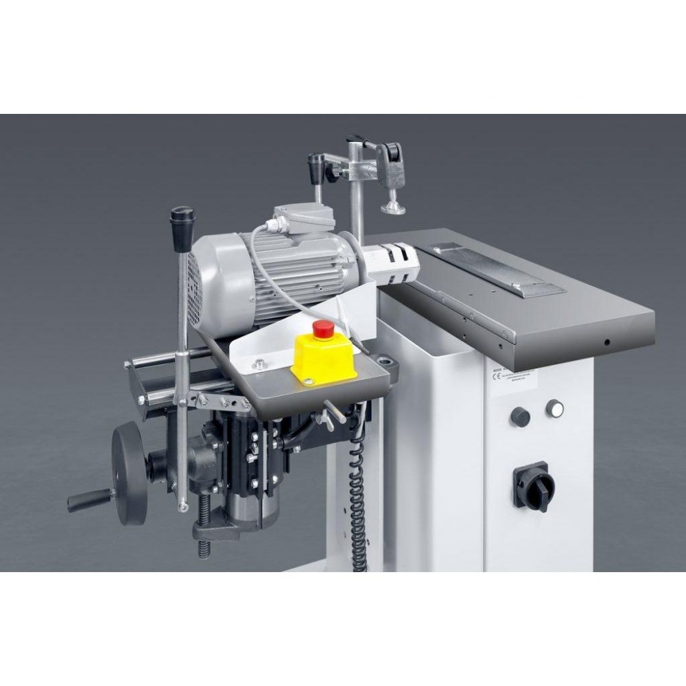 Свердлильно-пазувальний верстат Robland КВМ призначений для вибірки пазів і свердлення отворів у дерев`яних деталях при виробництві дверей і вікон. Верстат має міцну сталеву конструкцію, свердлильний супорт і стіл виготовлені з чавуну, стіл з ексцентриковим притиском деталей і дві рукоятки для переміщення свердлильного вузла вліво/вправо і вперед/назад. На верстаті є упори з лінійками для виставлення розміру і глибини паза. Також верстат має маховик для переміщення свердлильного вузла вгору і вниз з точністю 0,1 мм.